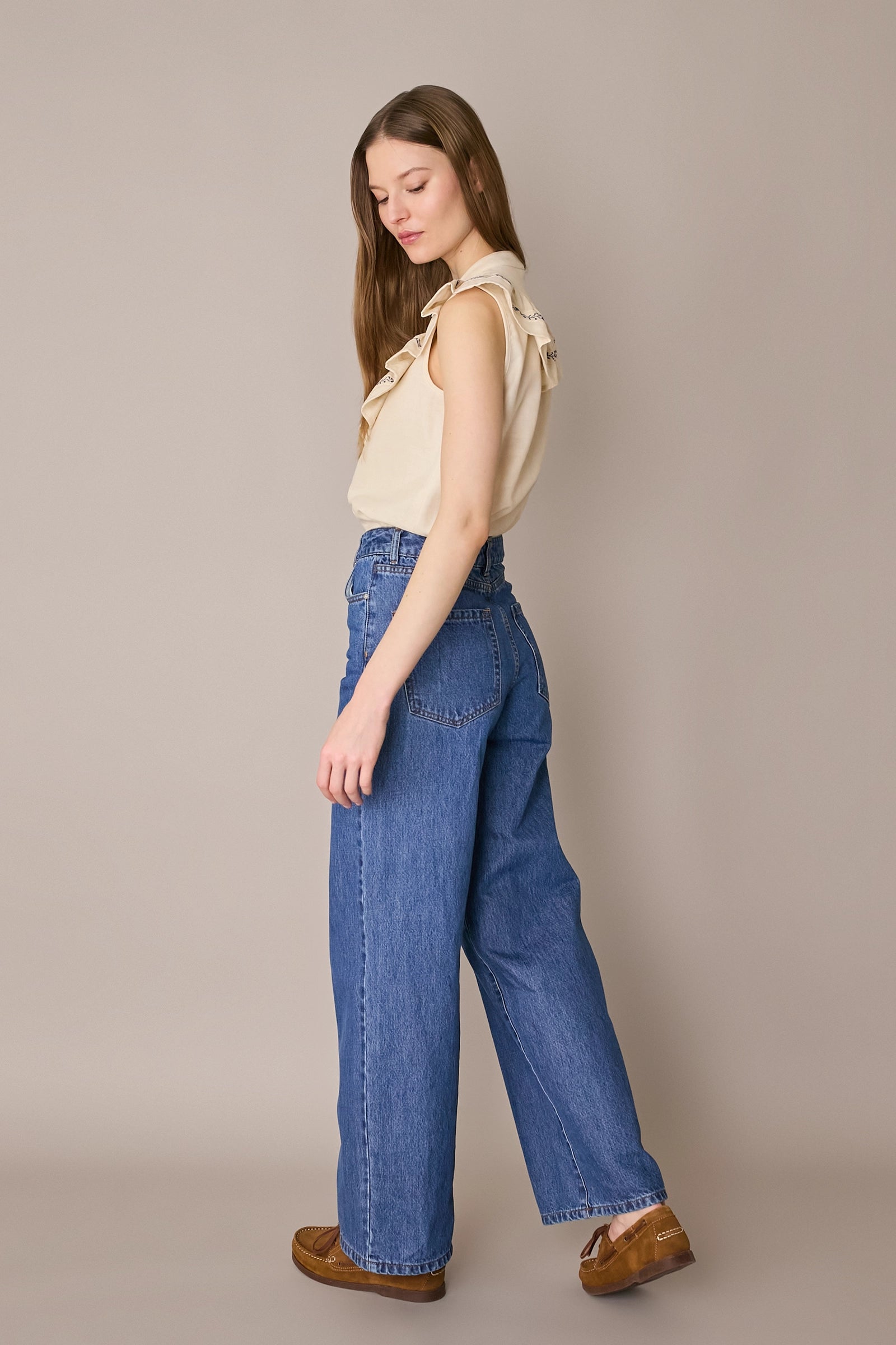 Nothing beats the versatility of classic five-pocket jeans. Dress them up with a silk shirt and Mary Janes or keep it casual with an oversized crewneck and sneakers. Designed with a straight, slightly oversized cut inspired by '90s styles, our five-pocket jeans come in two timeless washes: deep blue and vintage-effect.