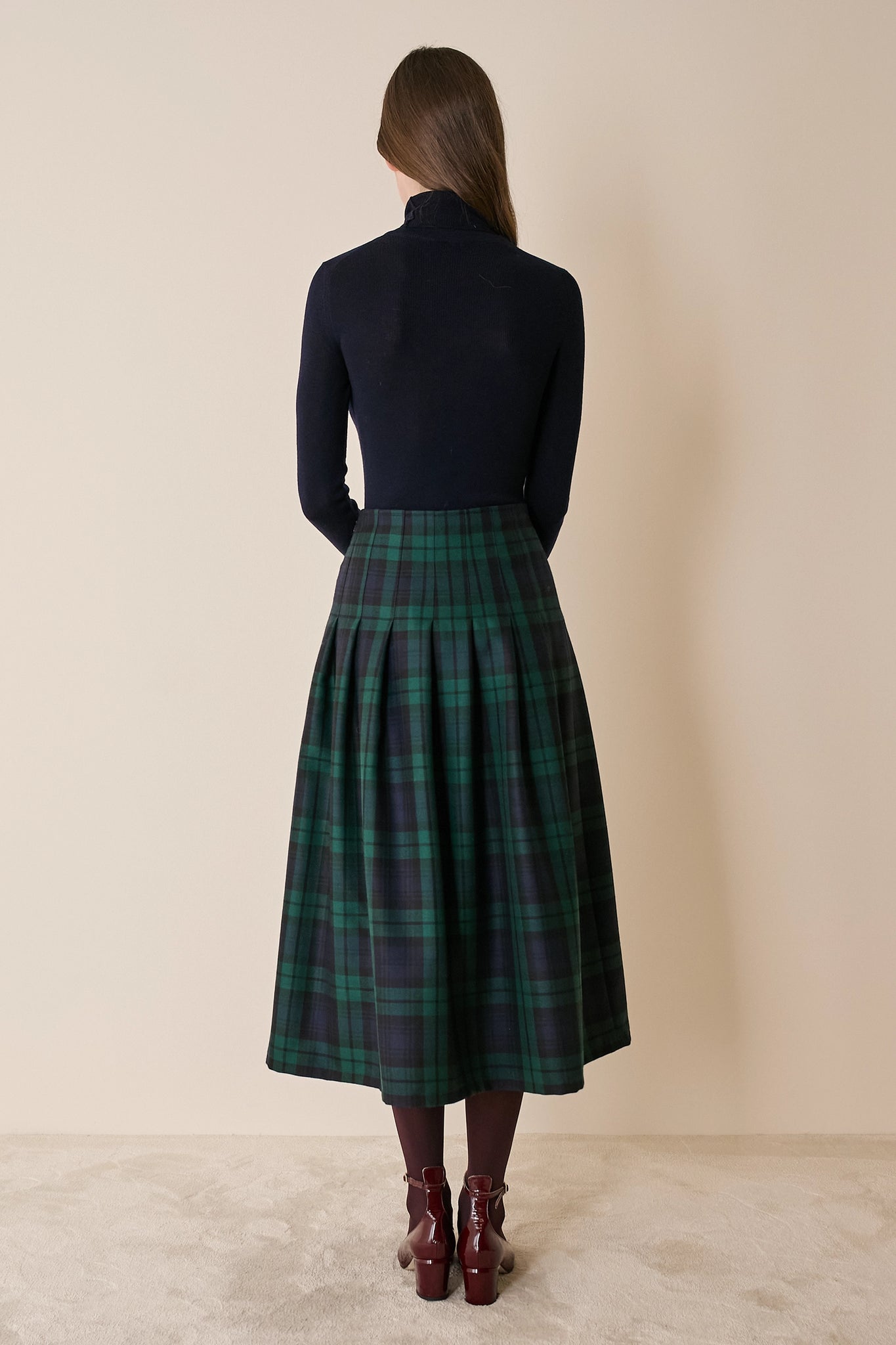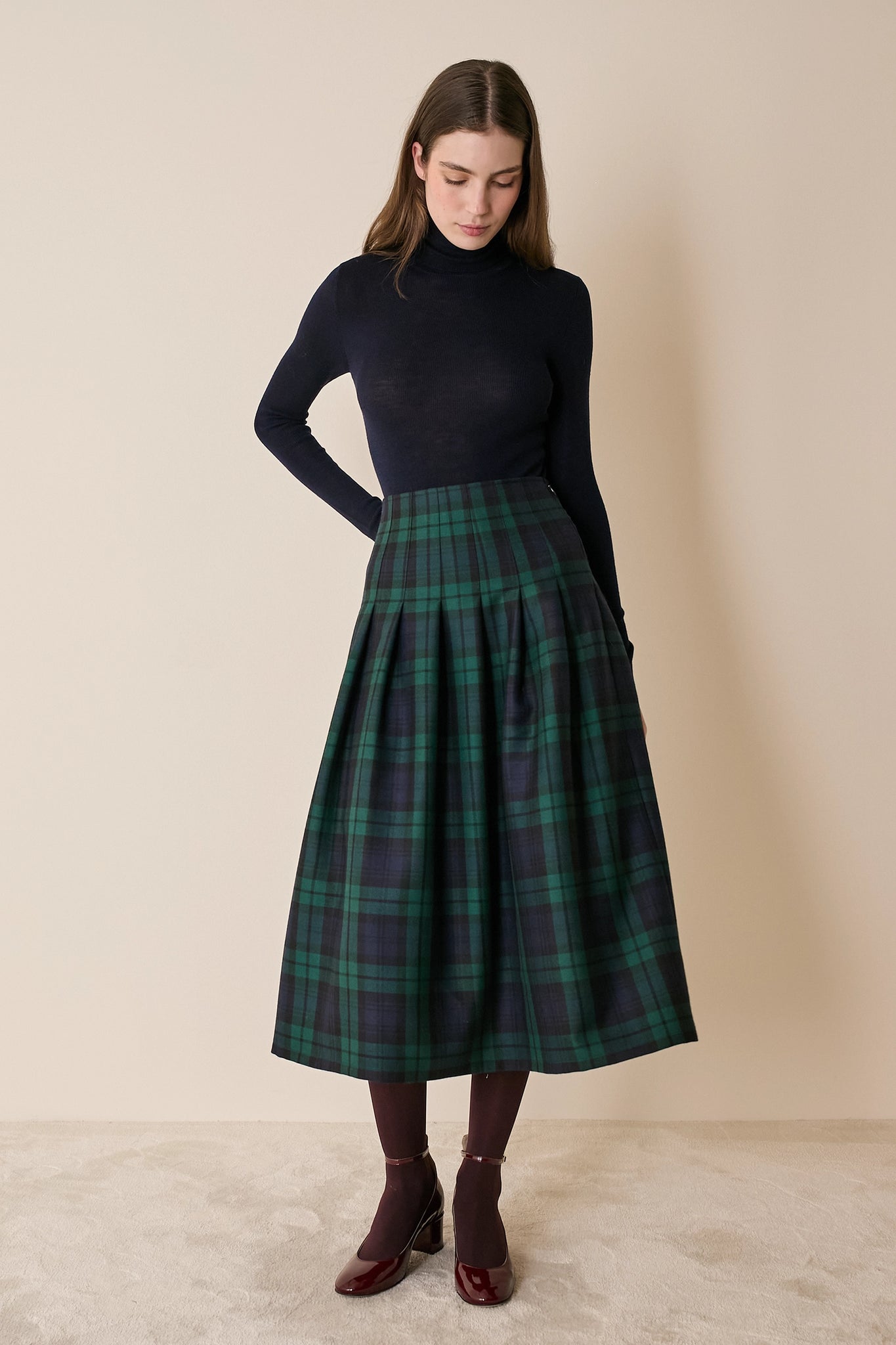 Easy-to-style and versatile, this maxi-pleated skirt will be your go-to all winter long. Wear it with a cozy knit and Mary Janes, or dress it up with a shirt and leather boots. Available in green and blue tartan.