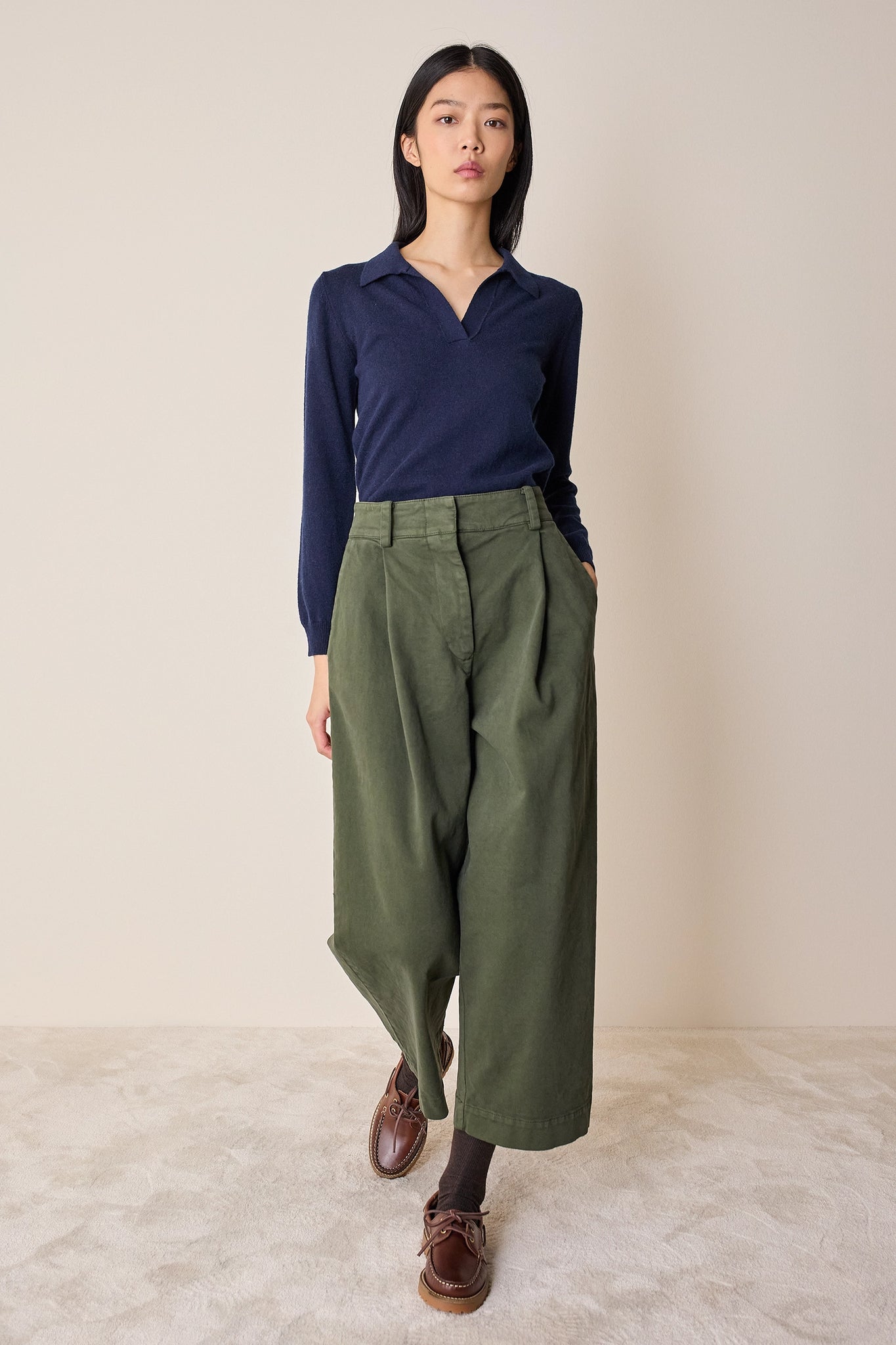 Cotton gabardine trousers with pleats