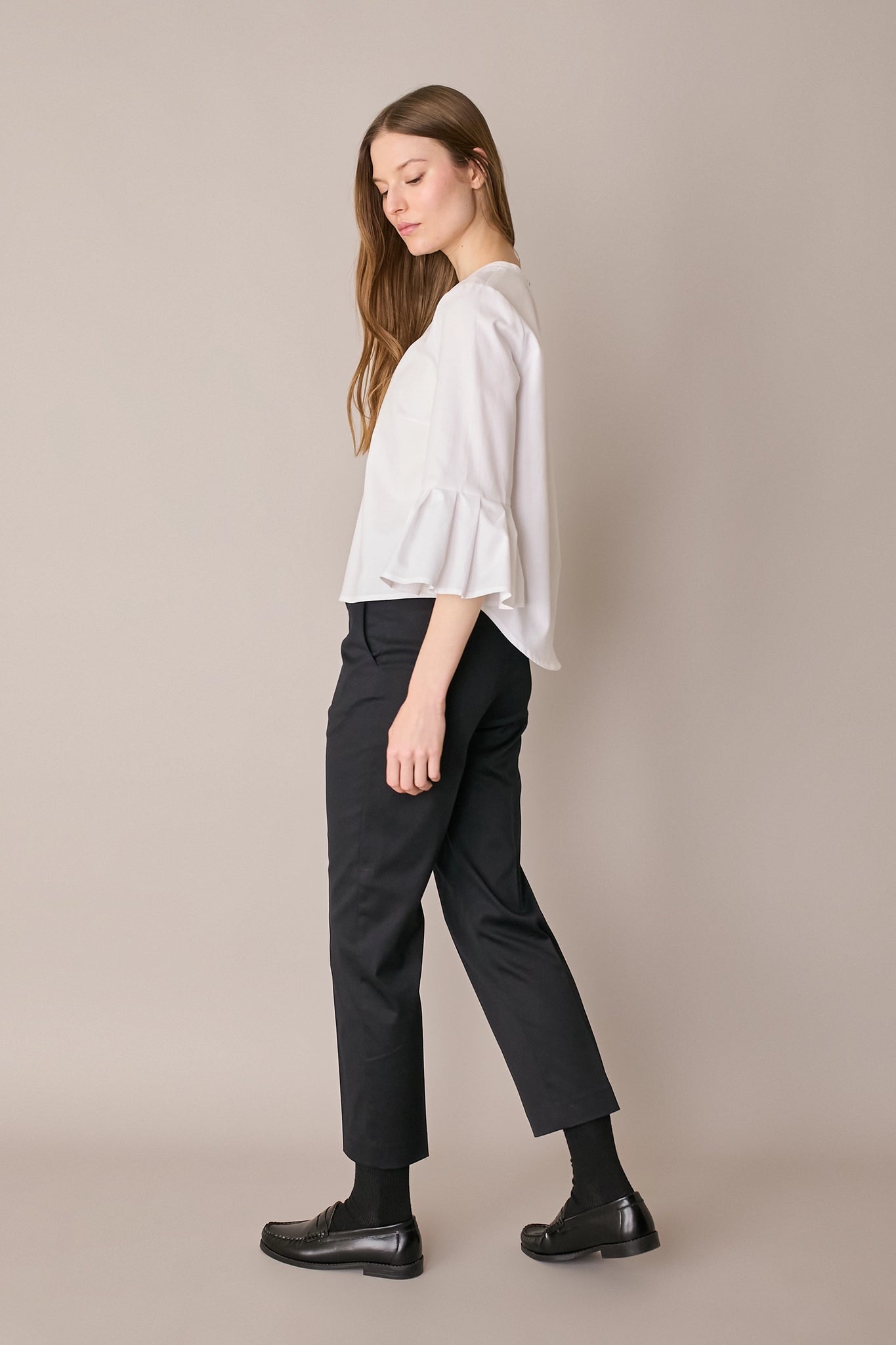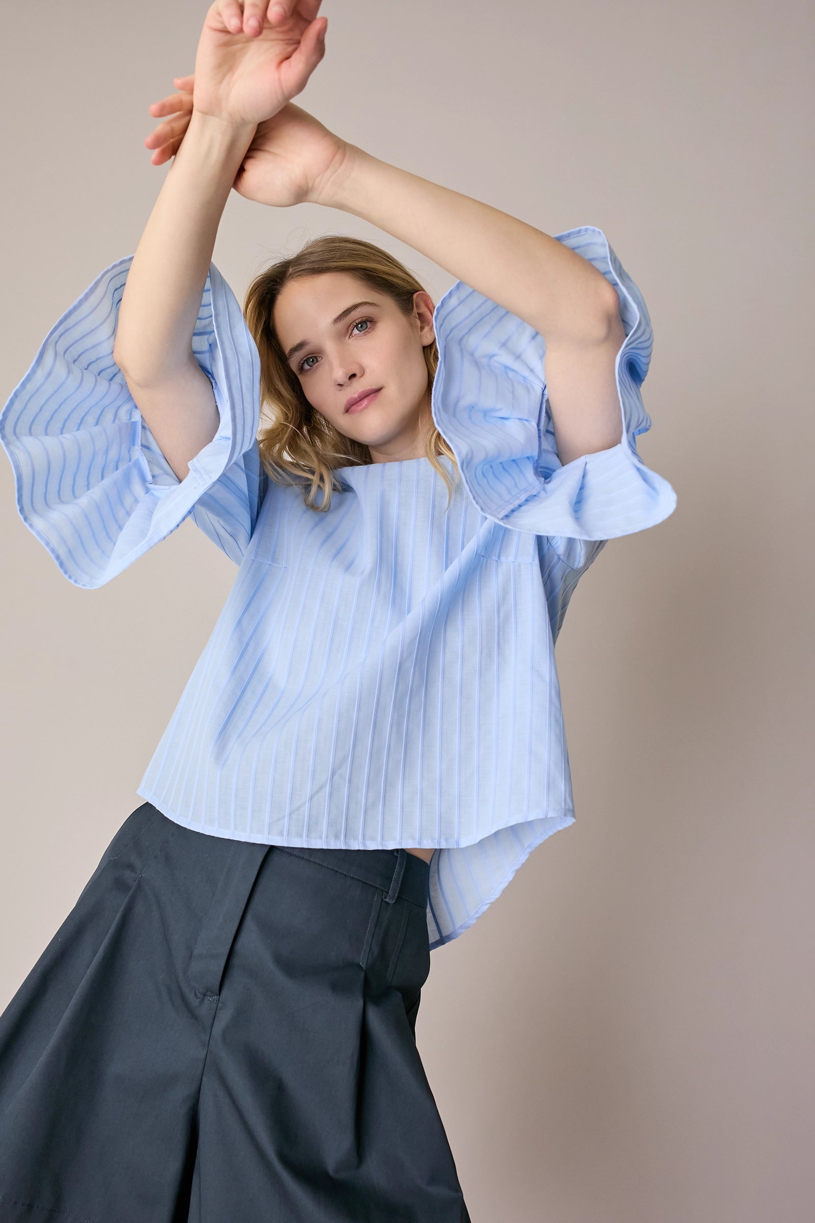 For this bell-sleeve top, we chose pure, lightweight cotton. Versatile and easy to style, it can be worn with jeans, shorts, or a skirt.