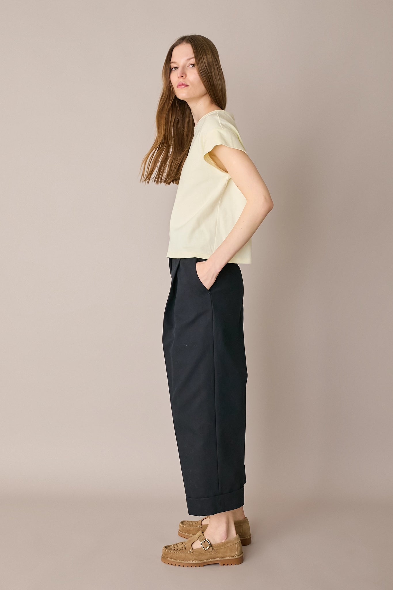 These wide-leg cotton trousers are perfect for everyday wear. The straight cut and relaxed wide-leg silhouette make them easy to pair with both loafers and ballet flats.