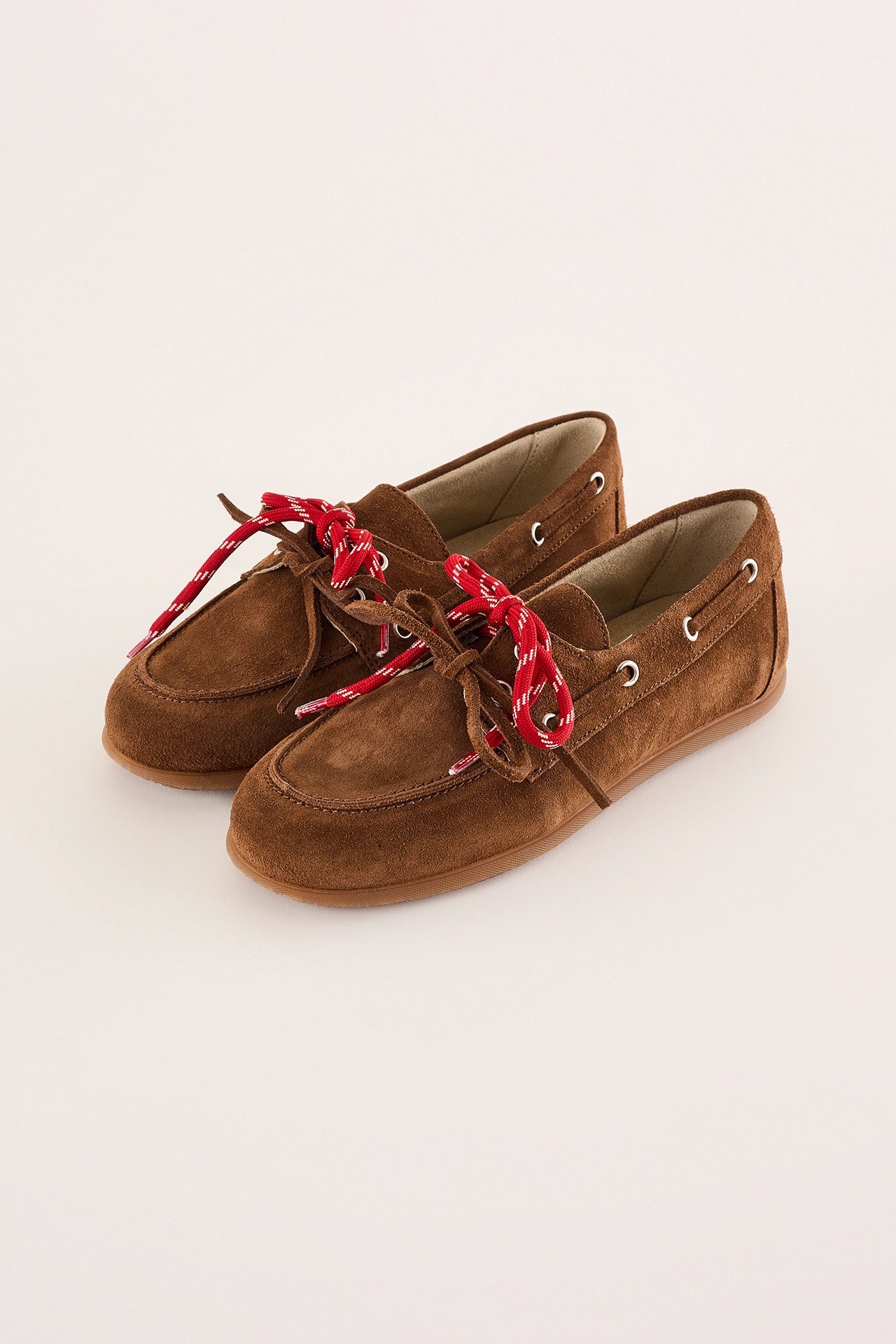 These slim-shaped loafers feature a double-lace detail that gives them a more casual feel than classic styles. Available in biscuit brown suede leather.