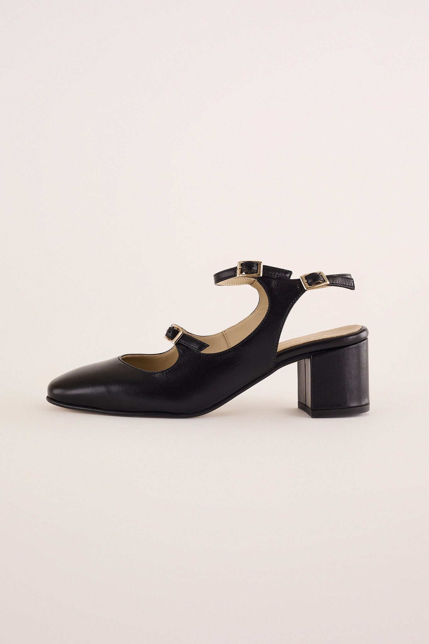 These double-strap slingbacks pair effortlessly with both dresses and jeans. Romantic and versatile, they’re also exceptionally comfortable thanks to the 5 cm block heel.