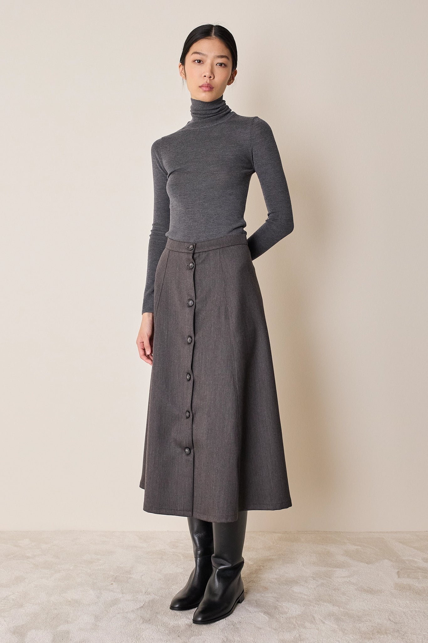 Meet the most versatile skirt of the season. Pair it with a structured shirt or a simple tee, with an oversized crewneck or a fitted turtleneck. It works just as well with sneakers as it does with boots or ballet flats.