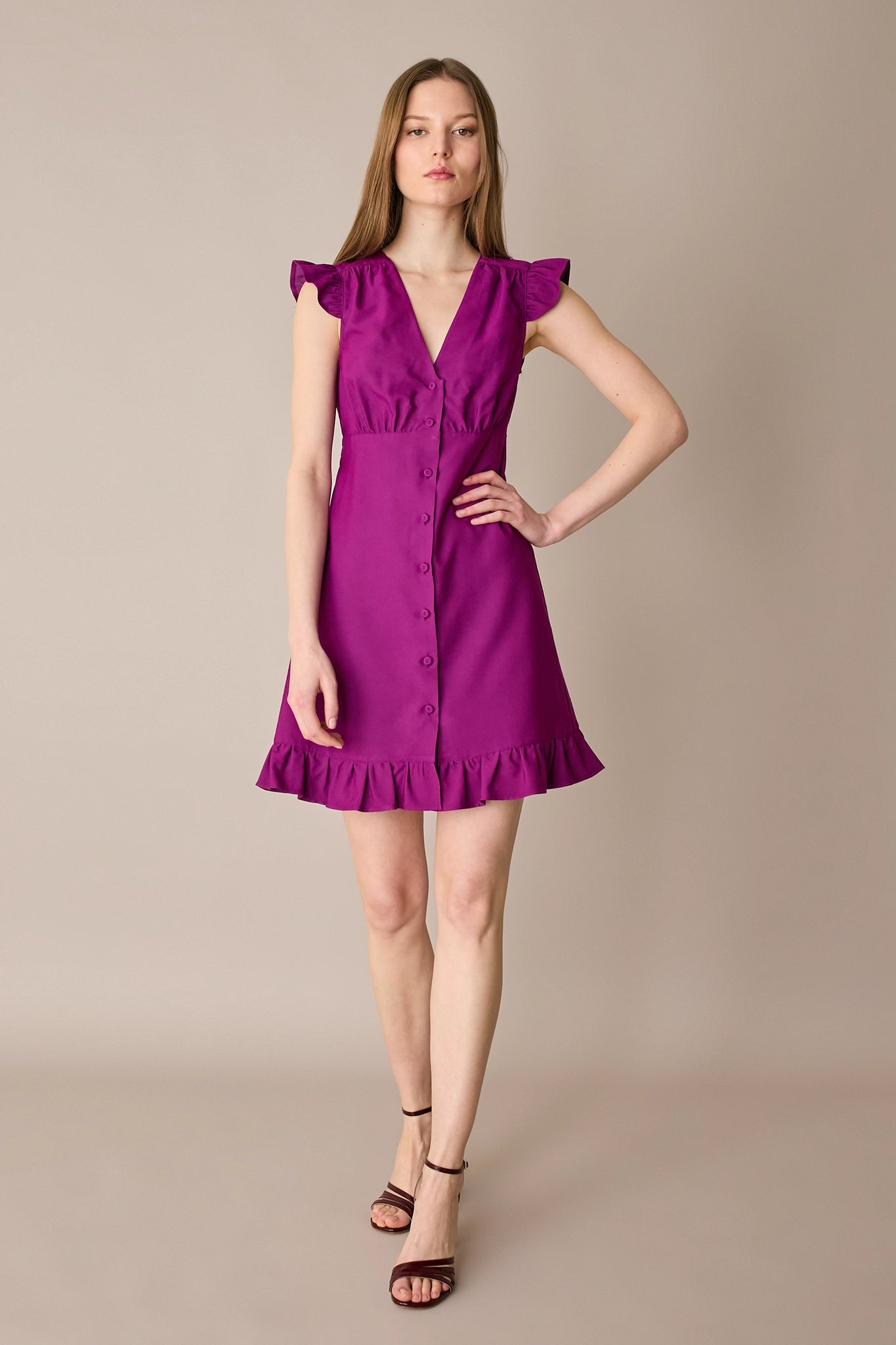 - Ruffled sleeves