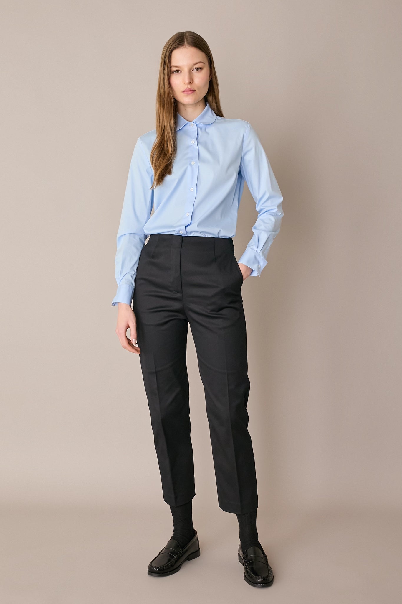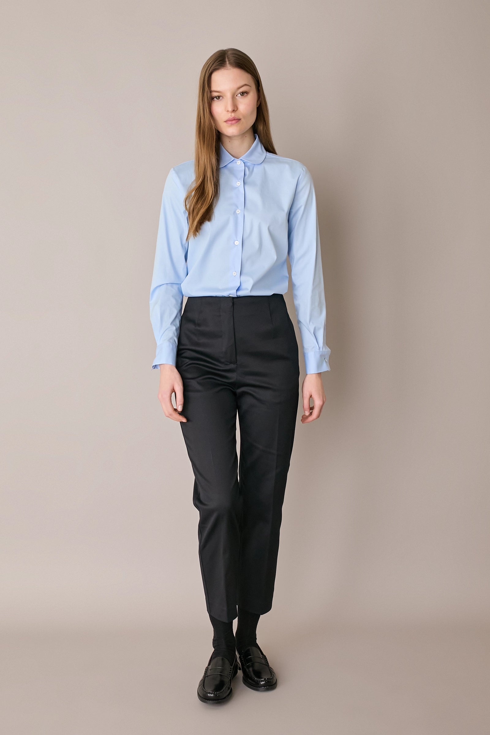 Questa camicia in cotone elasticizzato è caratterizzata da un colletto stondato. Semplice e versatile, è perfetta anche per l’ufficio. Disponibile in bianco.