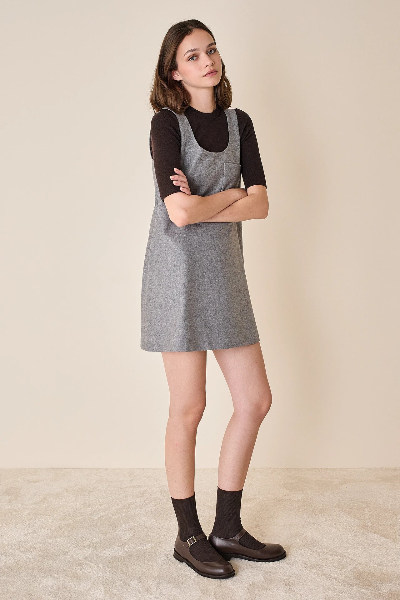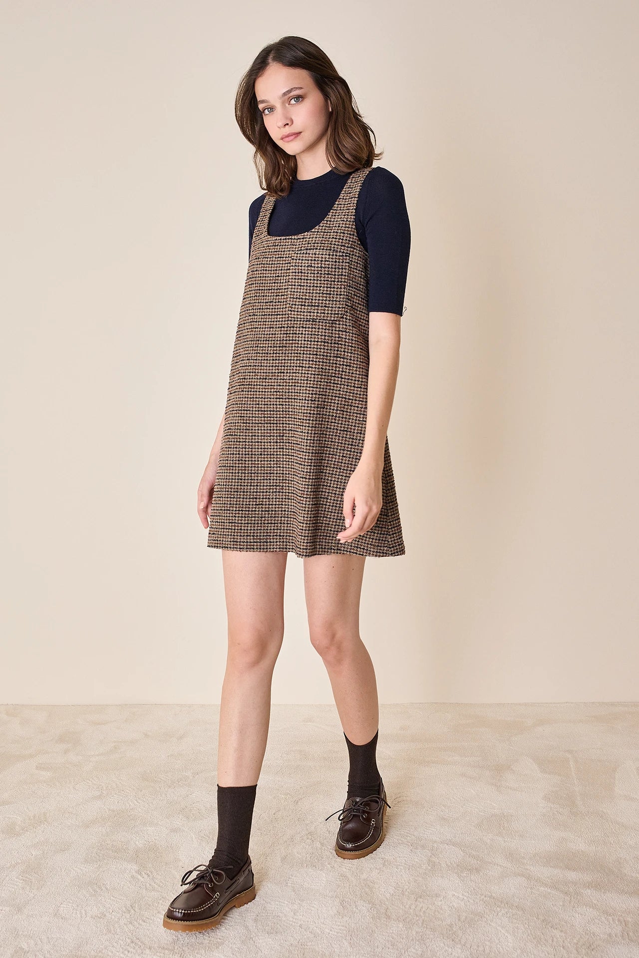 Disponibile in grigio tinta unita o pied-de-poule marrone.