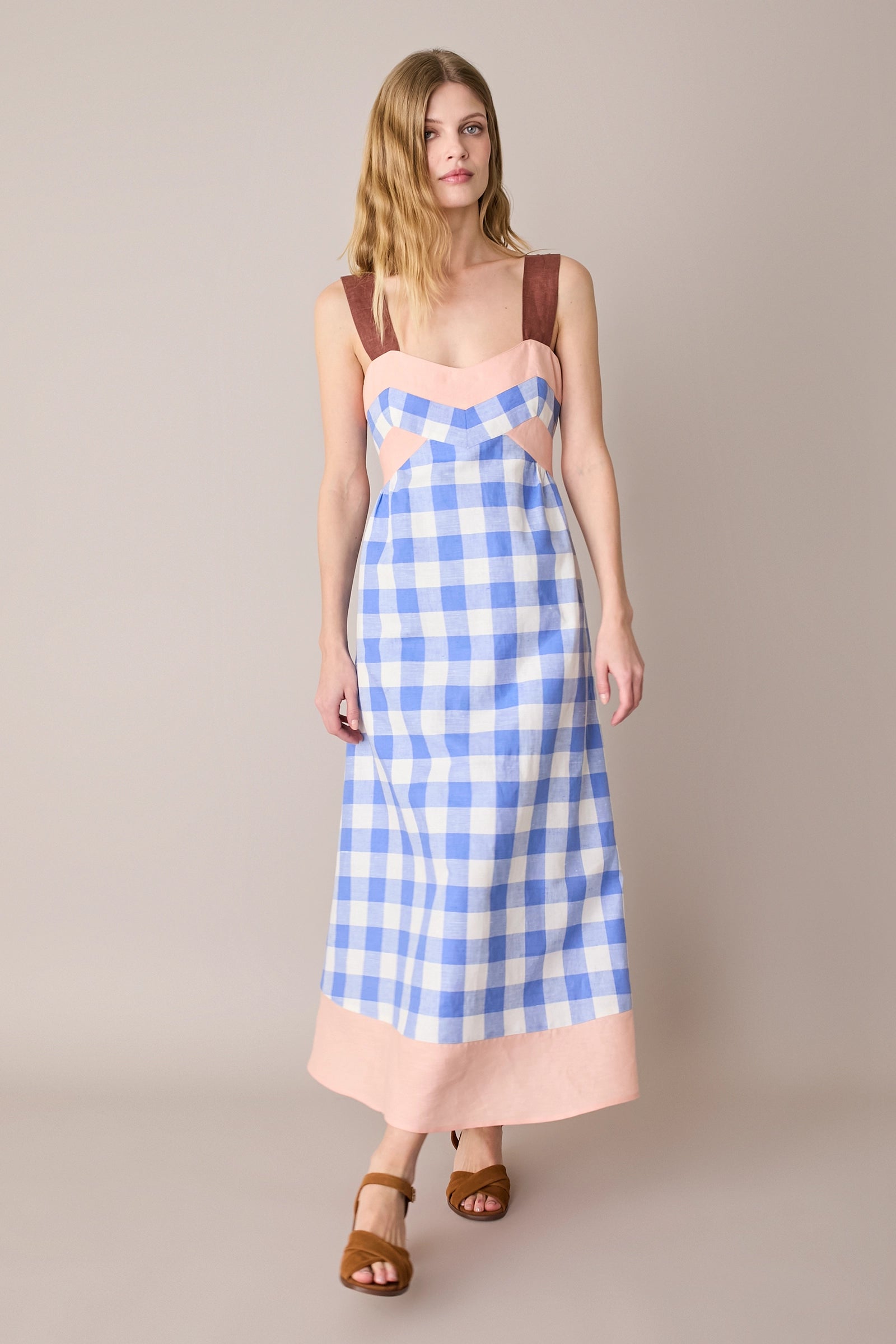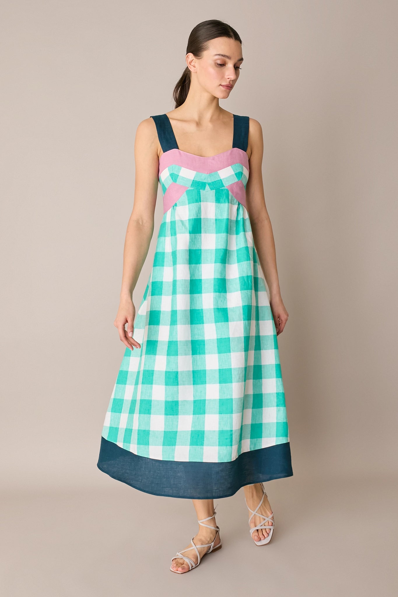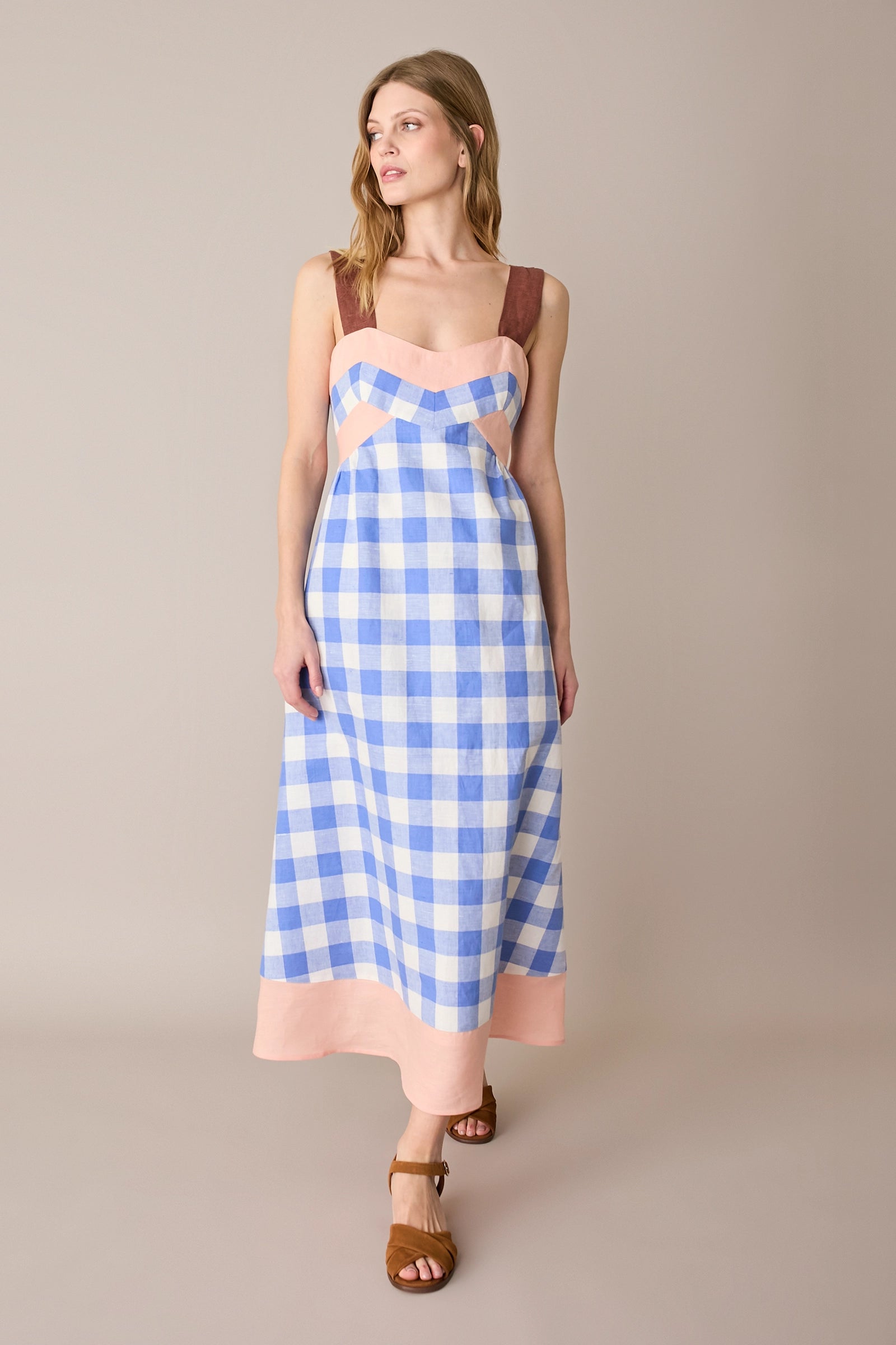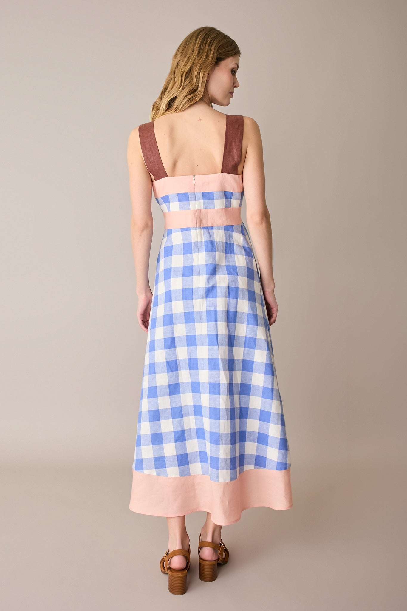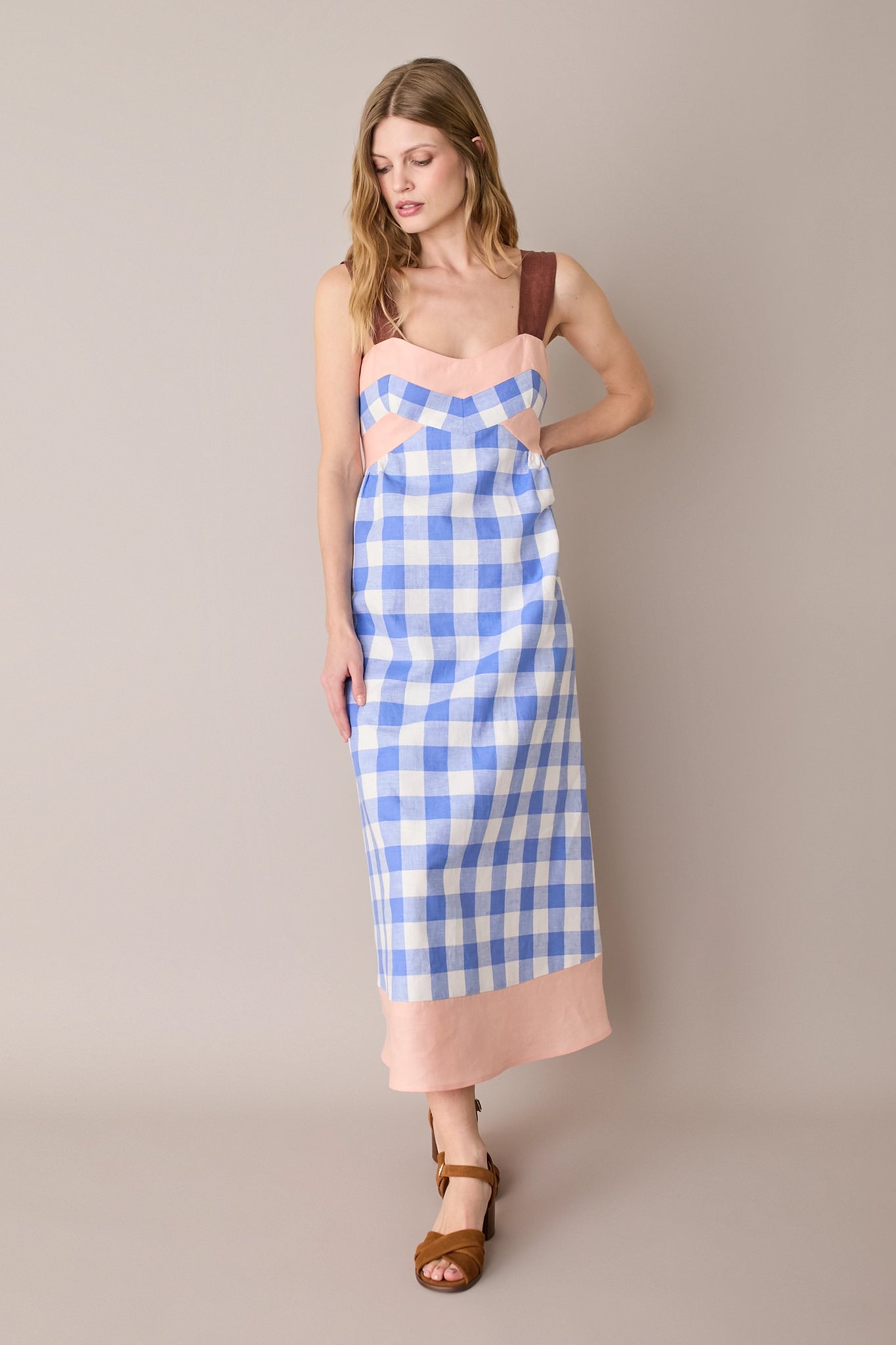 Per questo abito abbiamo scelto un lino fresco e leggero. Caratterizzato da una costruzione particolare, enfatizzata dall’uso di colori diversi, è disponibile in tre varianti perfette per l’estate.