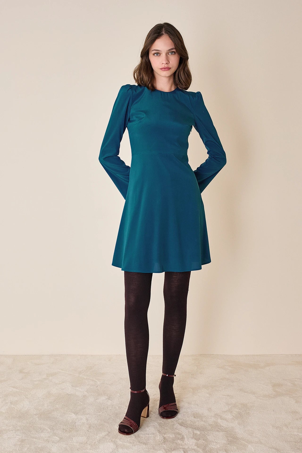 Semplice e versatile, questo abito in seta stretch è perfetto tanto per l’ufficio quanto per una cena.