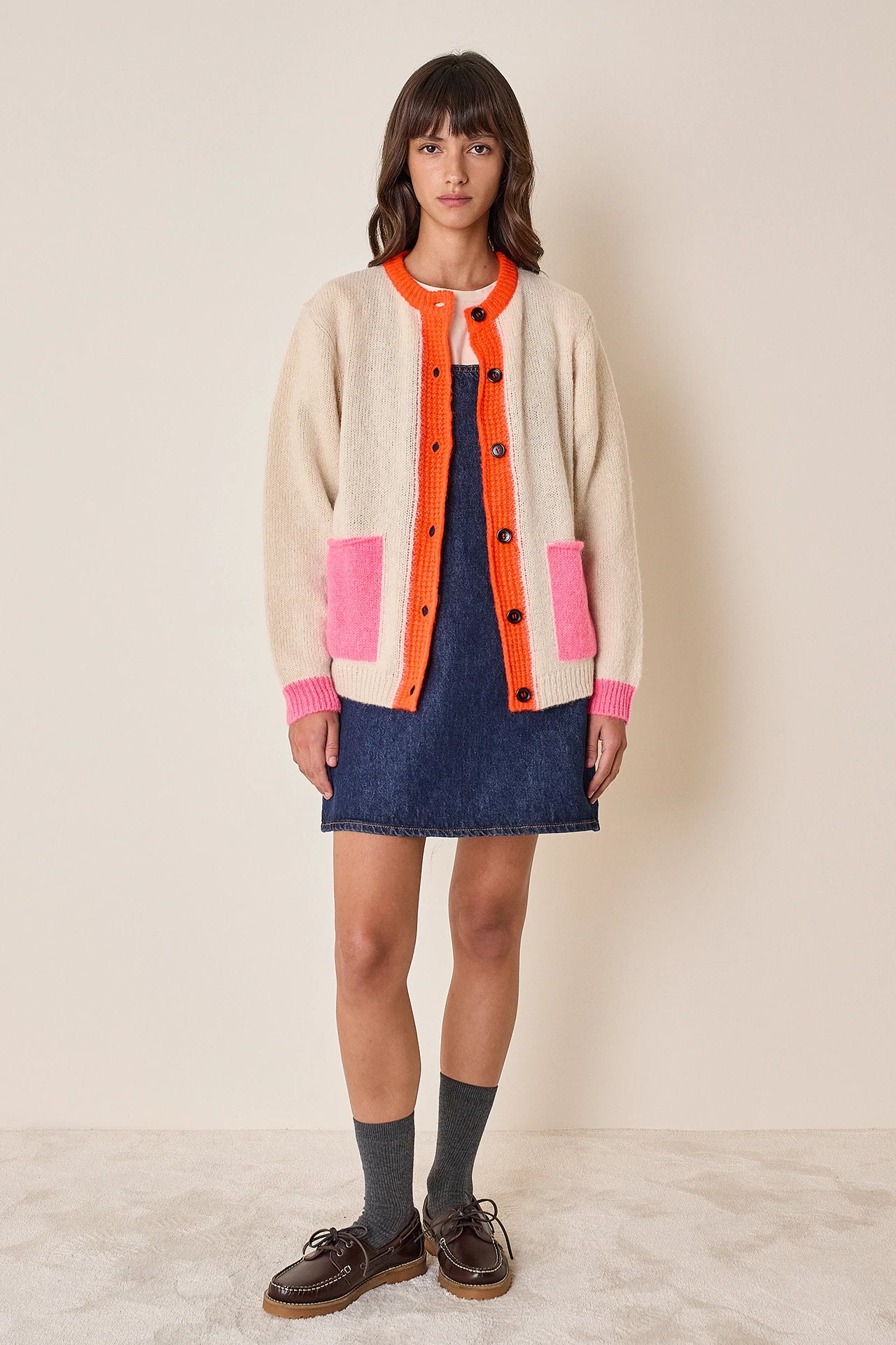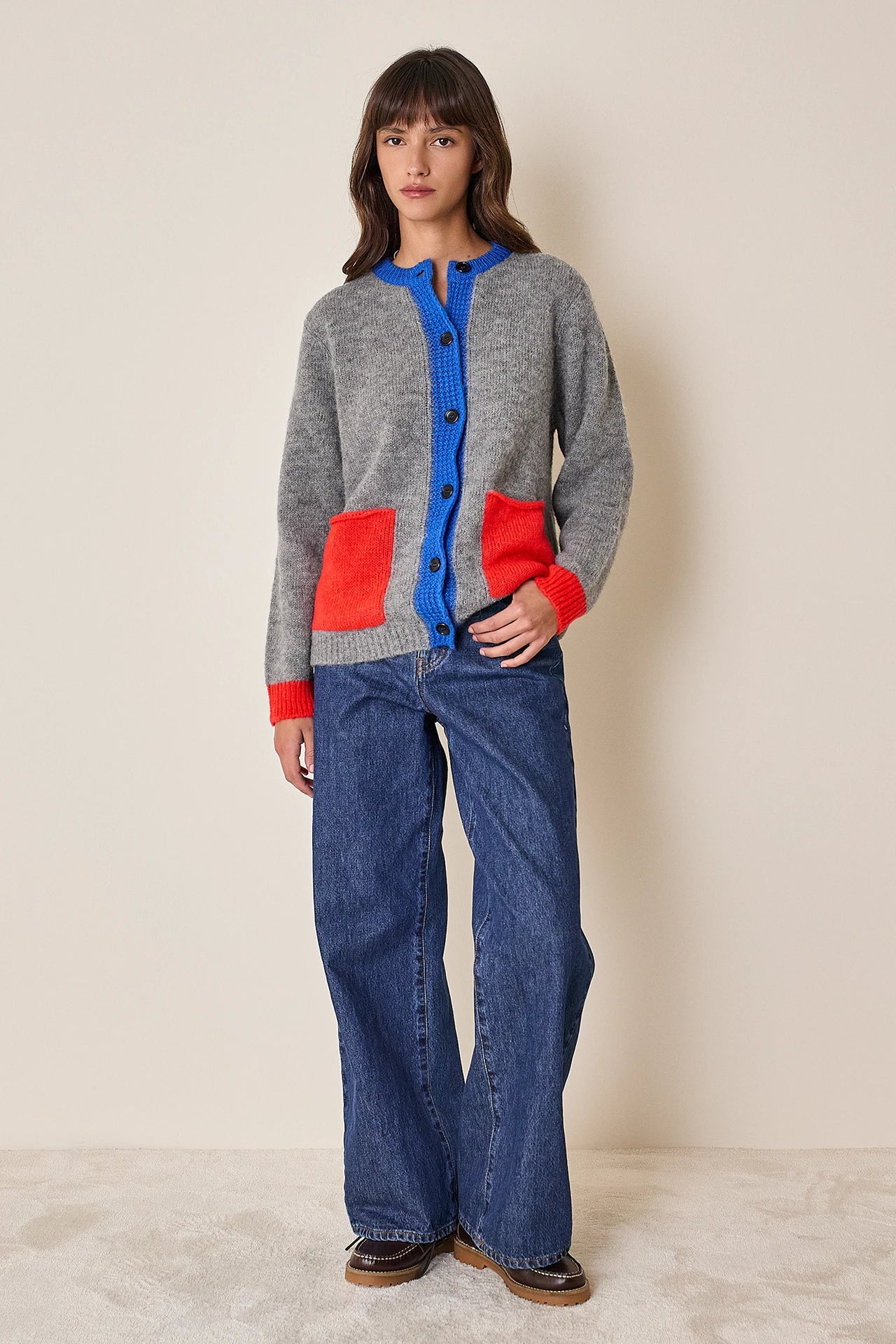 Questo cardigan in alpaca è disegnato per portare un po' di colore anche alle giornate più grigie. Caratterizzato dai contrasti cromatici di tasche e abbottonatura, è disponibile in grigio, panna o cioccolato.