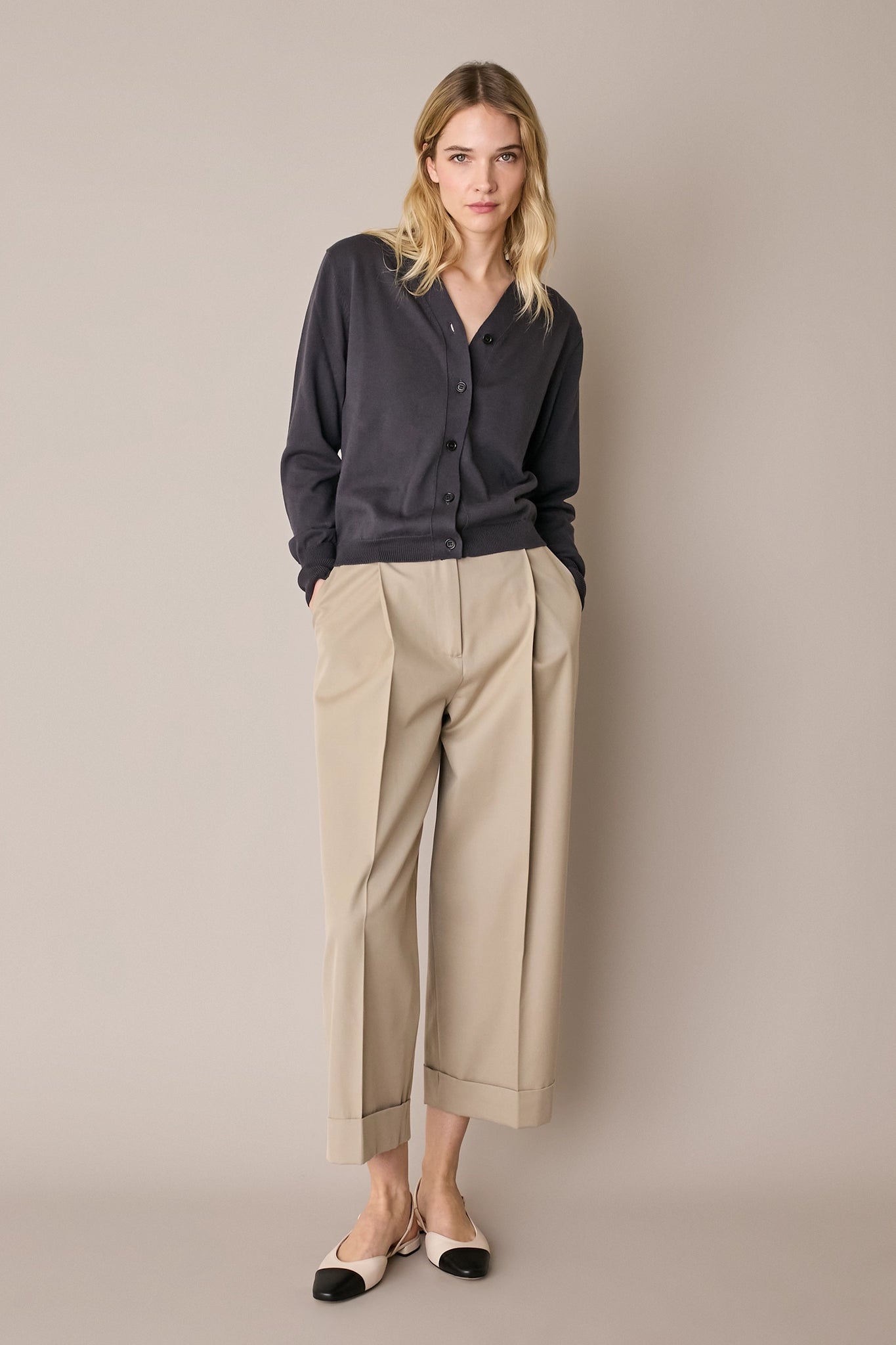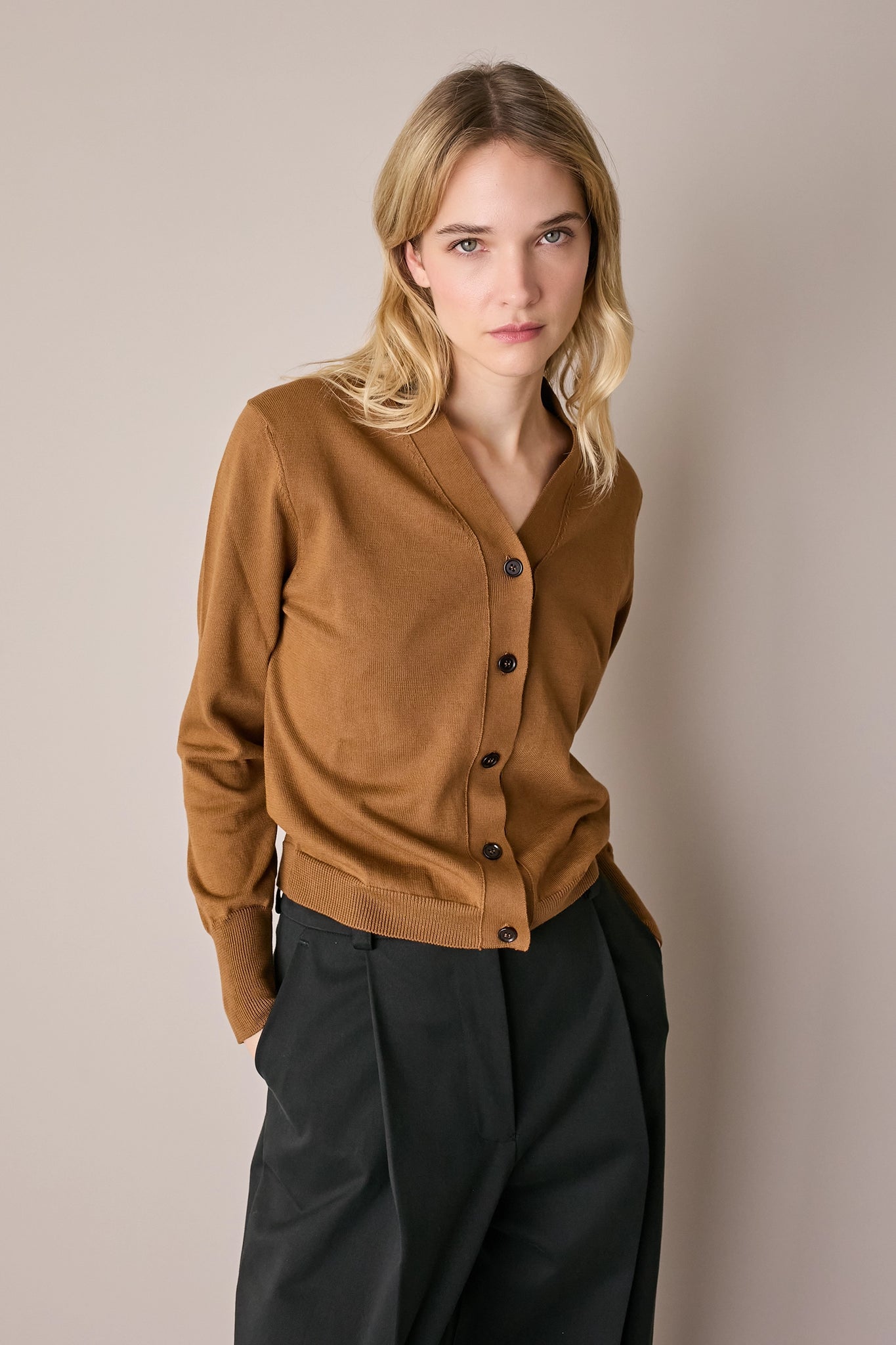 Per questo cardigan abbiamo scelto un cotone morbido e leggero, perfetto per la primavera o le serate estive.
