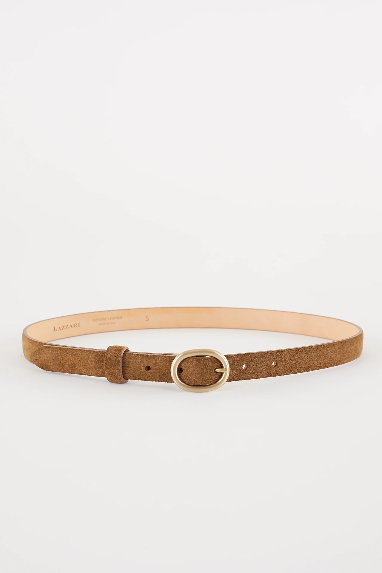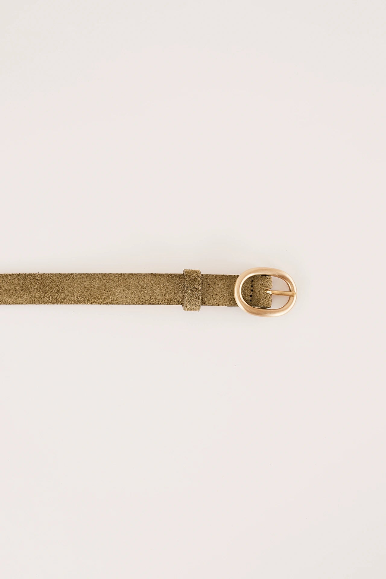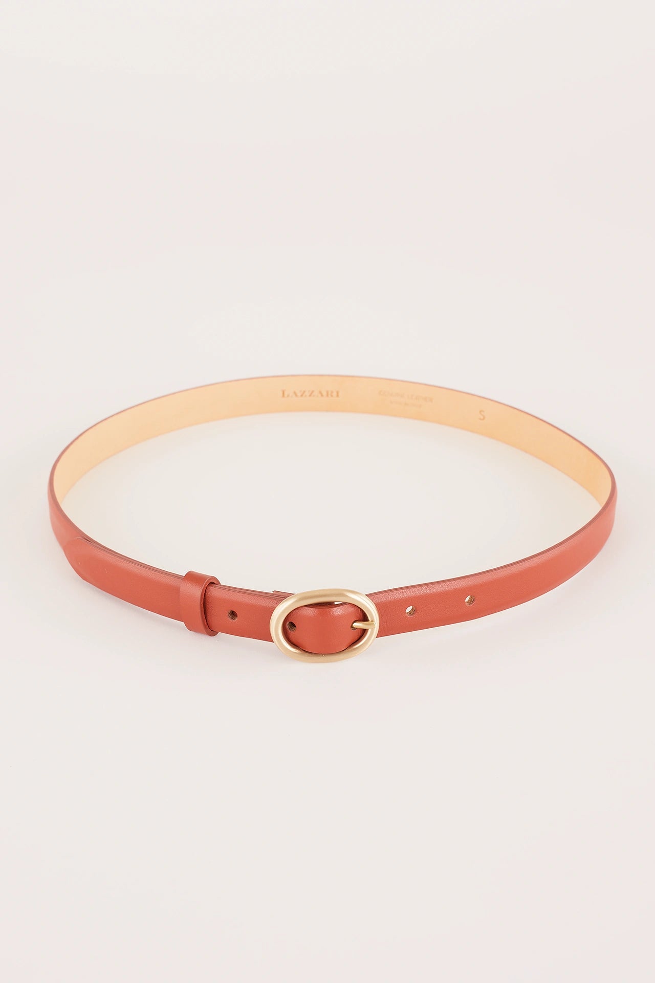 Questa cintura in pelle di ispirazione rétro è caratterizzata dalla fibbia ovale dorata.