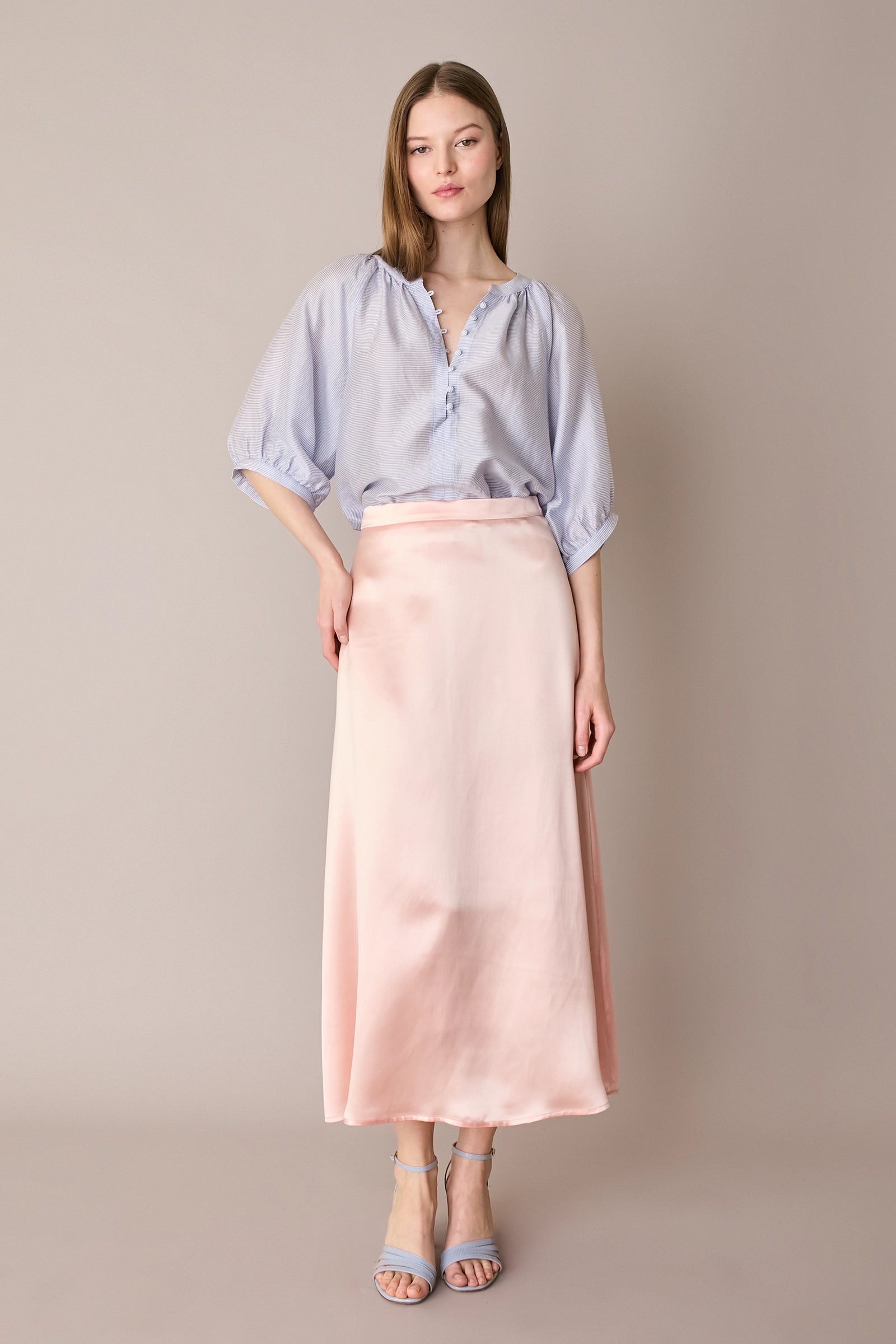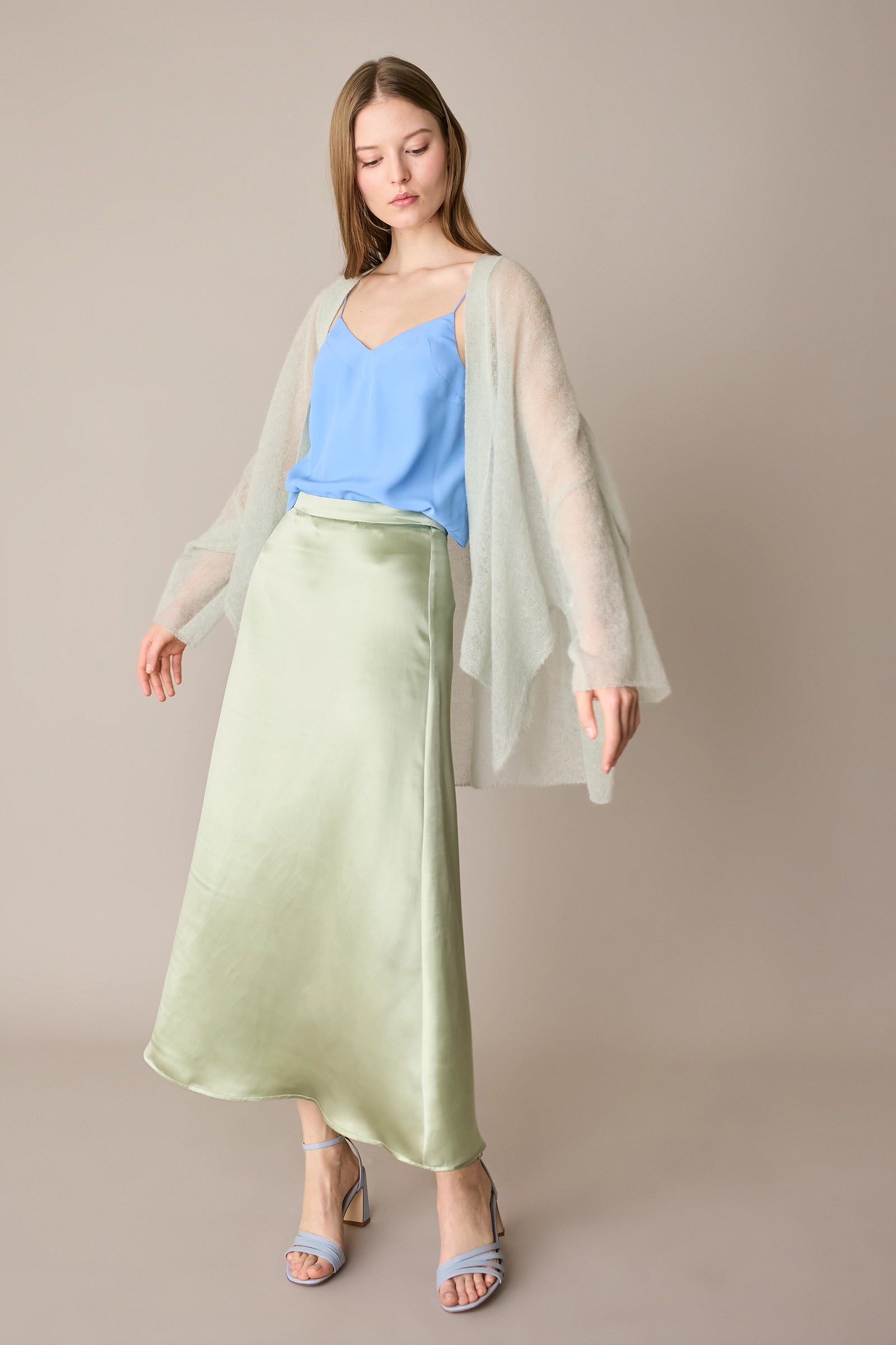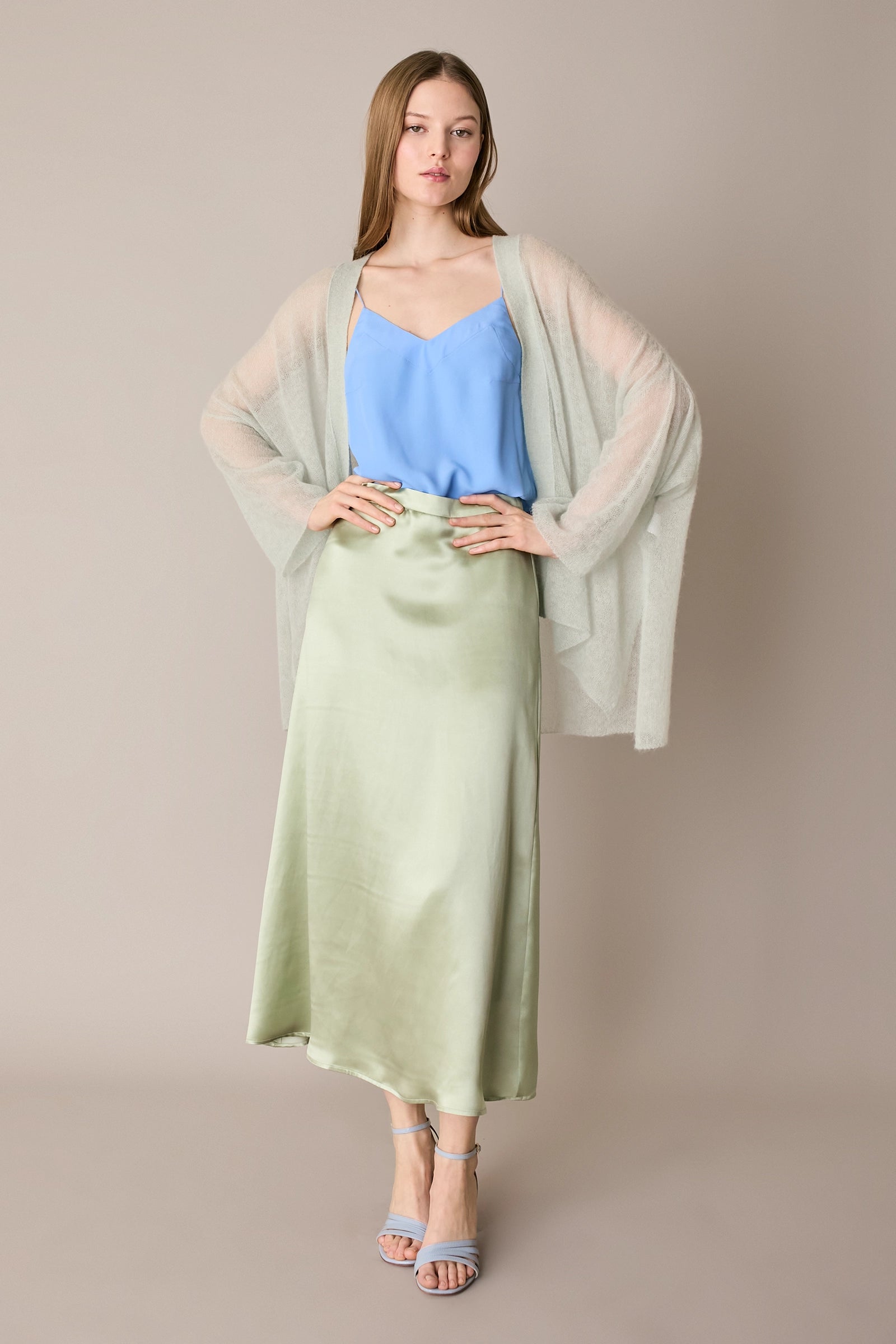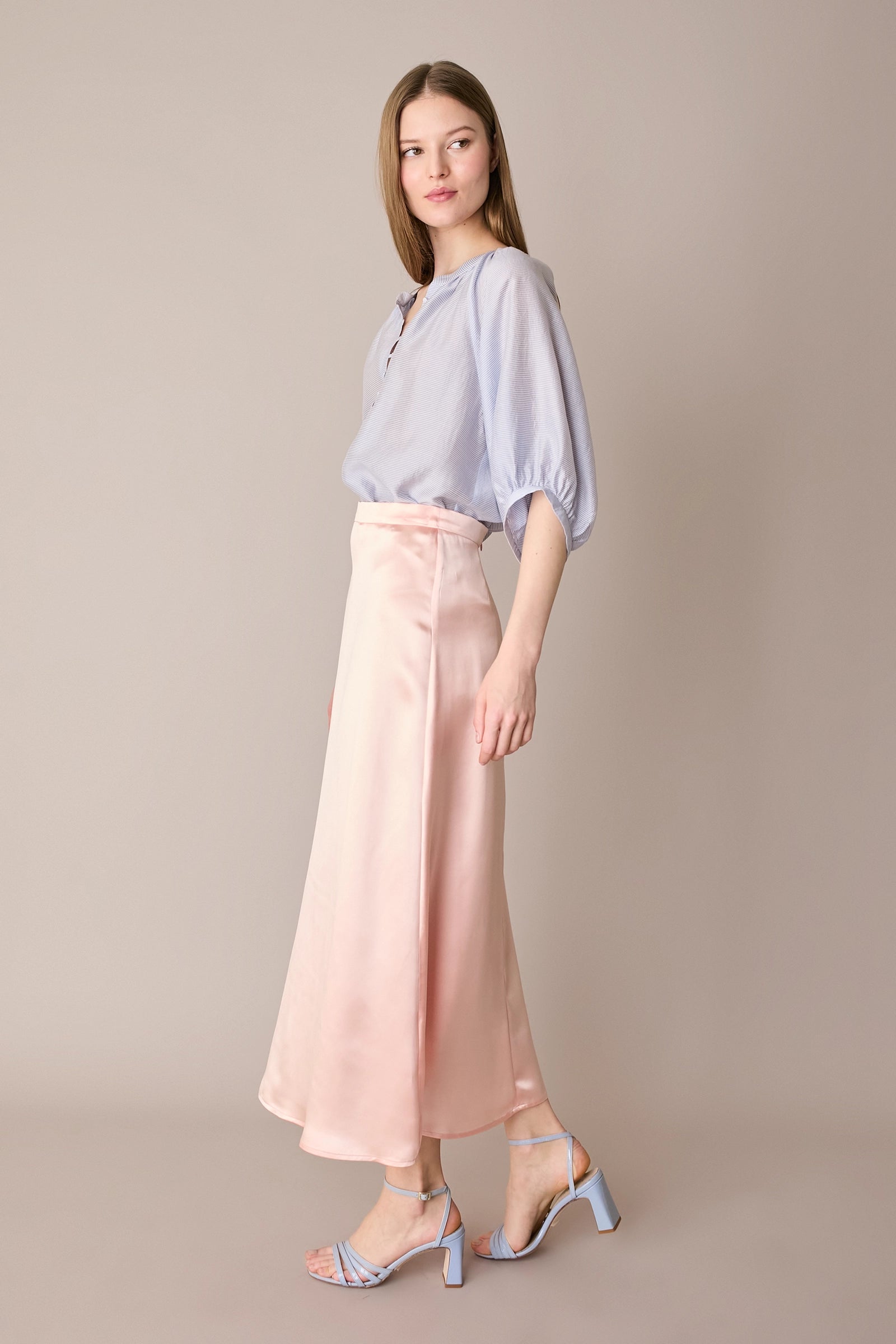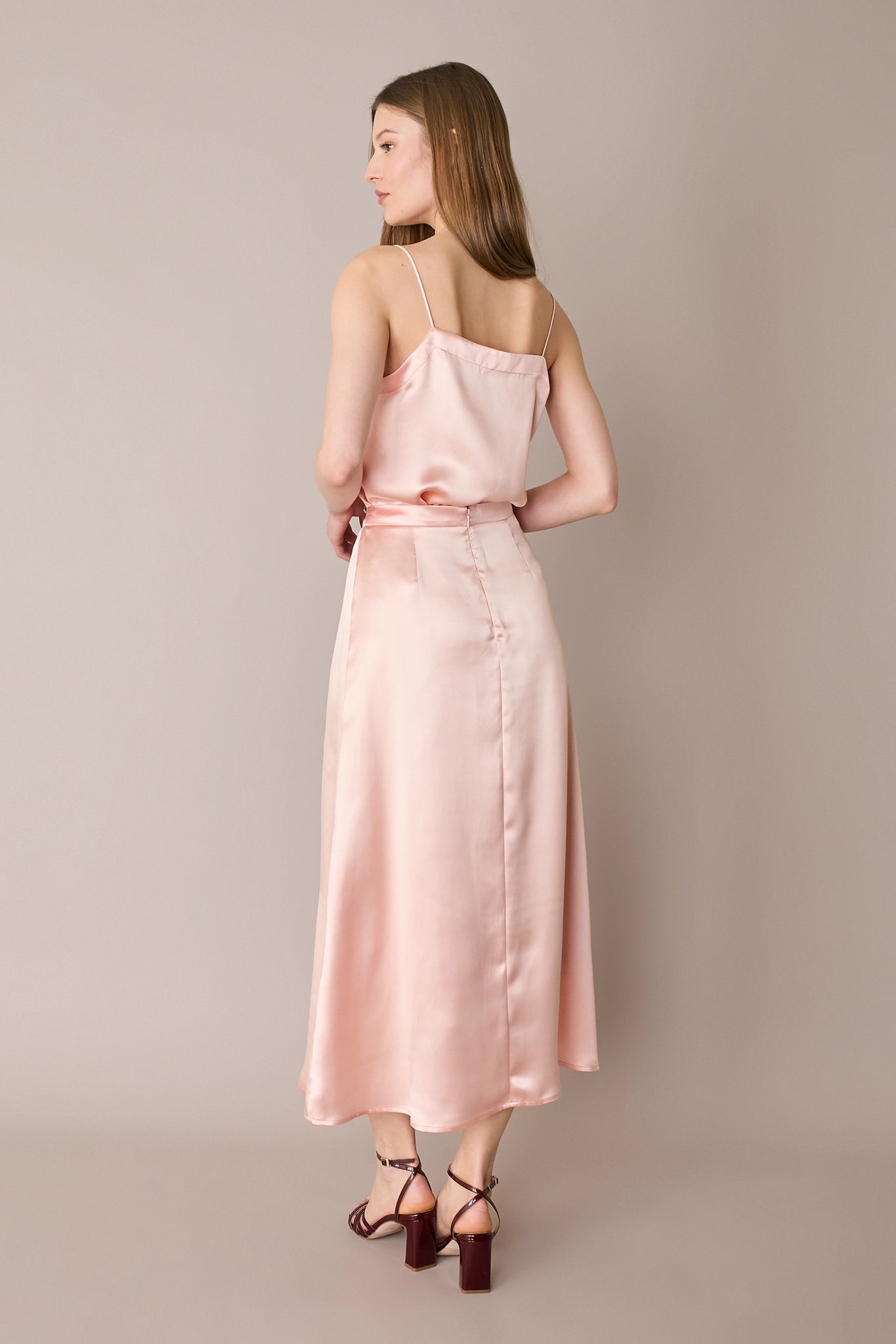 Questa gonna in blend di seta è il capo perfetto per tutte le stagioni – e per tutte le occasioni. Indossala adesso con una camicia in cotone e un paio di mocassini, in vacanza con una T-shirt, ma anche in autunno con un maglioncino oversize e un paio di stivali. Hai un matrimonio o una cerimonia in programma? Puoi abbinarla al top realizzato nello stesso tessuto per creare un completo elegante.