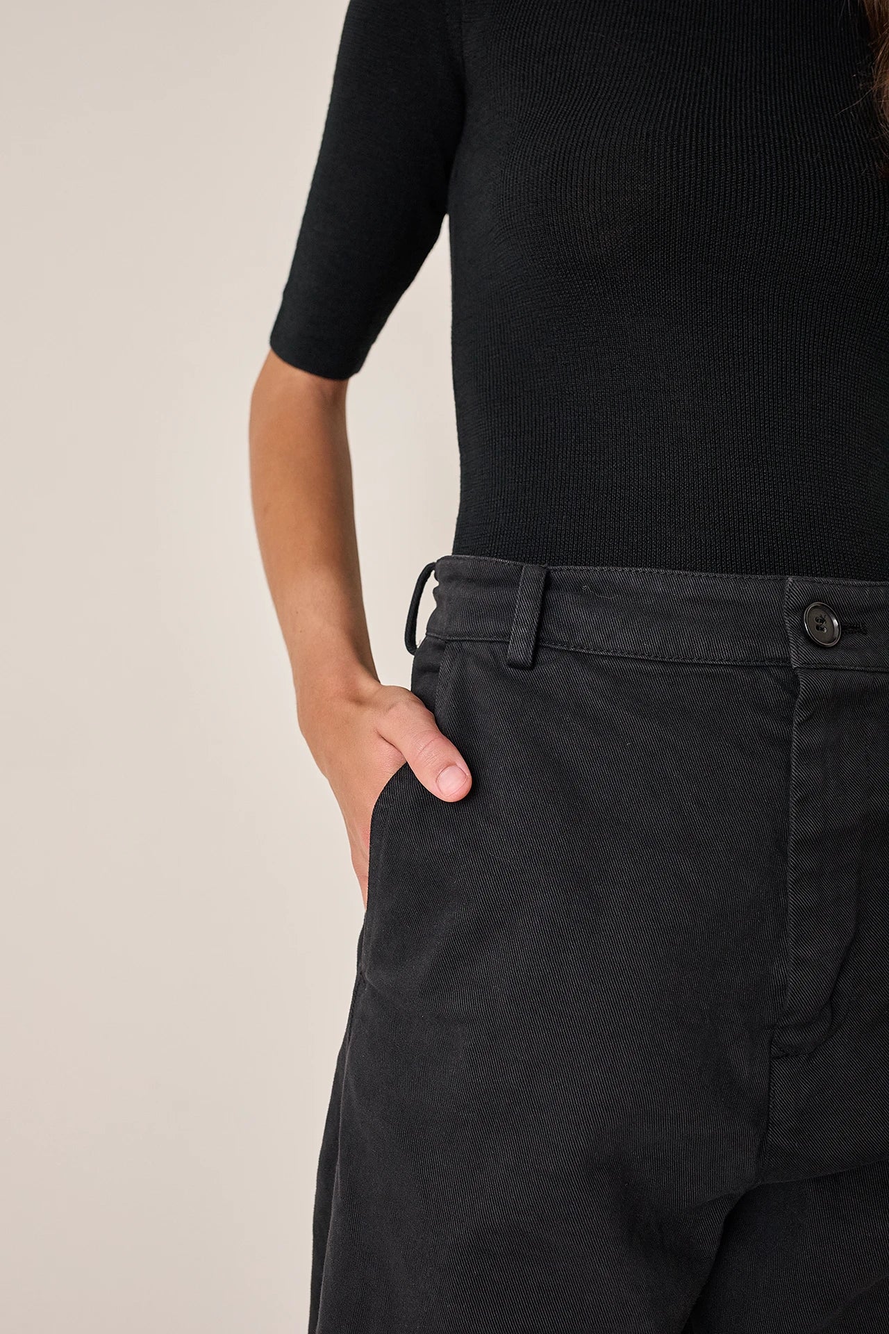 Composizione tessuto nero: 99% cotone, 1% elastan.