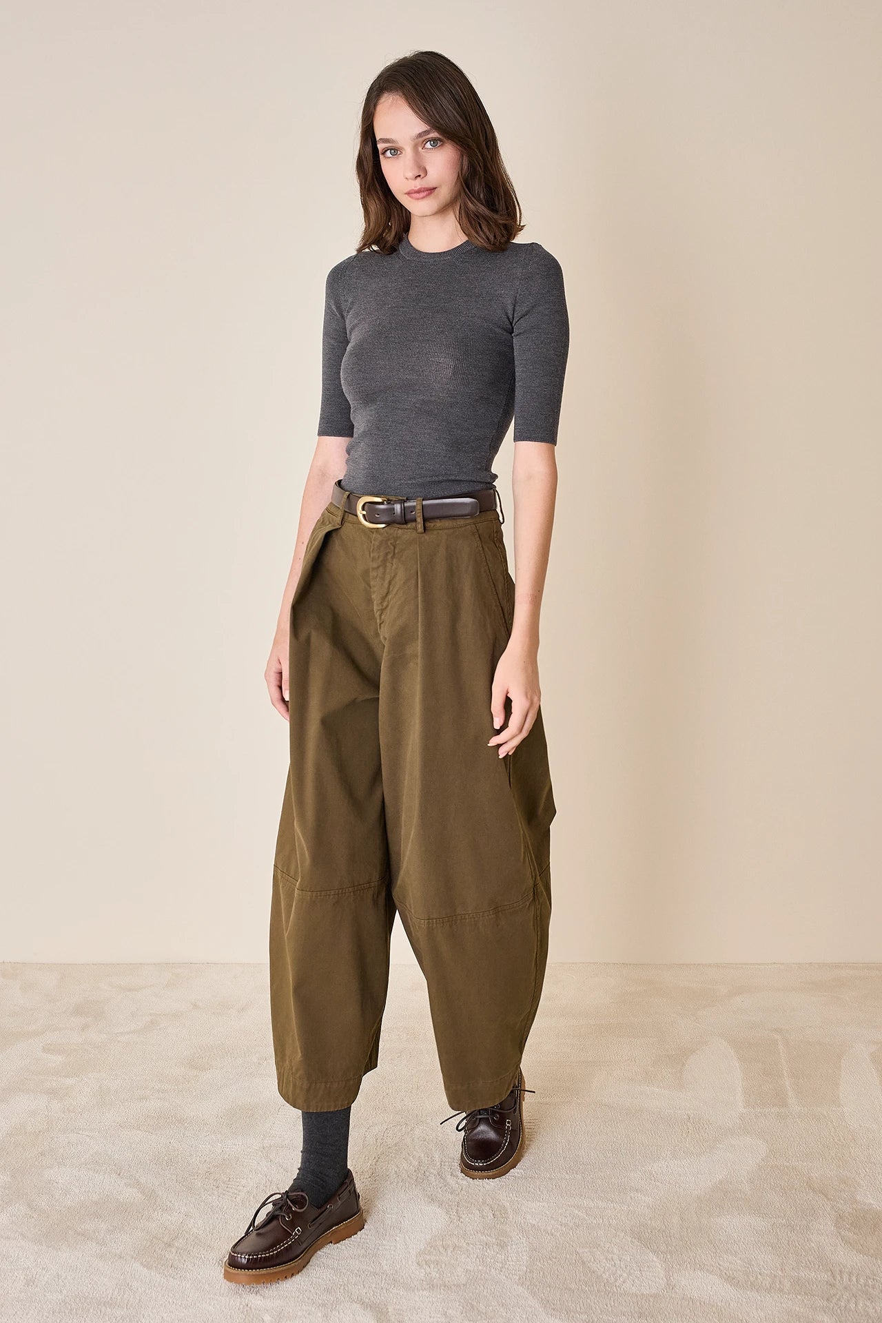 Questi pantaloni in cotone sono caratterizzati dalla caratteristica silhouette balloon con pince frontali e dalla cucitura decorativa lungo la gamba. Realizzati in cotone tinto in capo, sono perfetti per i tuoi look casual.