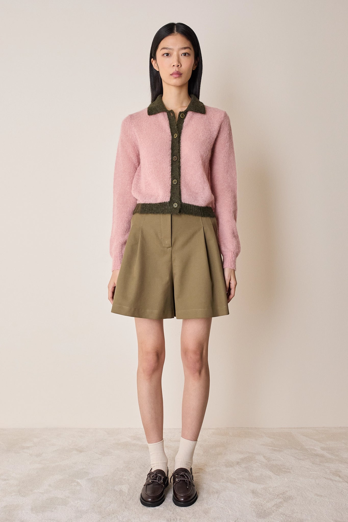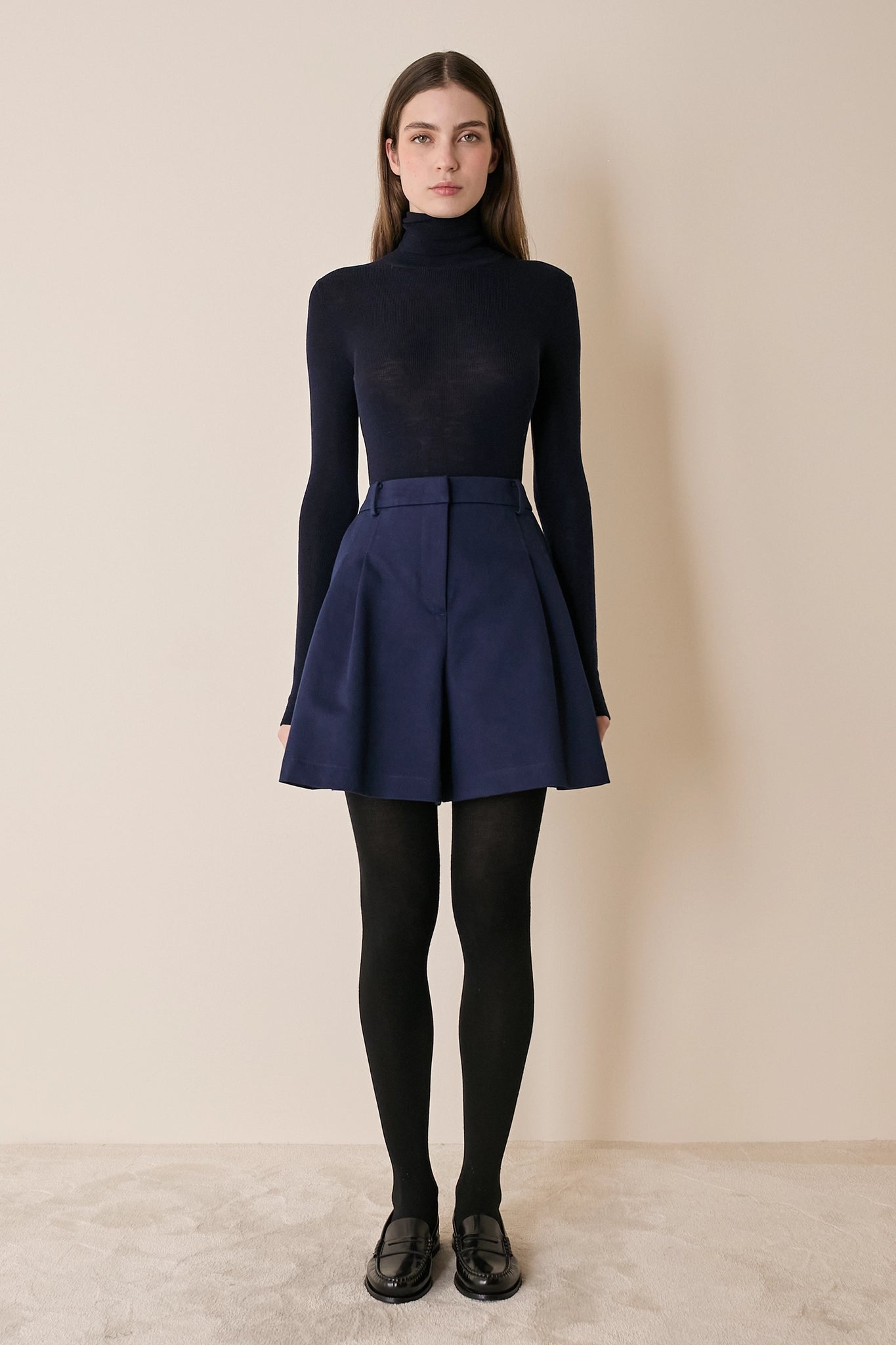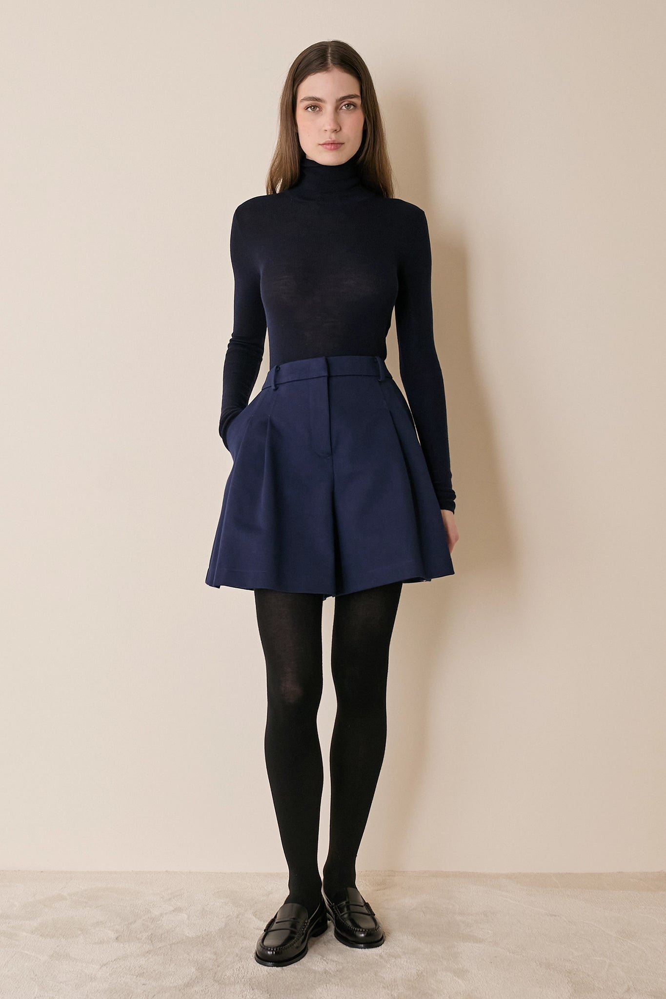 Questi pantaloni corti in cotone ti accompagneranno per tutto l'inverno. Puoi abbinarli a camicie e stivali, ma anche a maglioni in lana e ballerine. Disponibili in blu o militare.