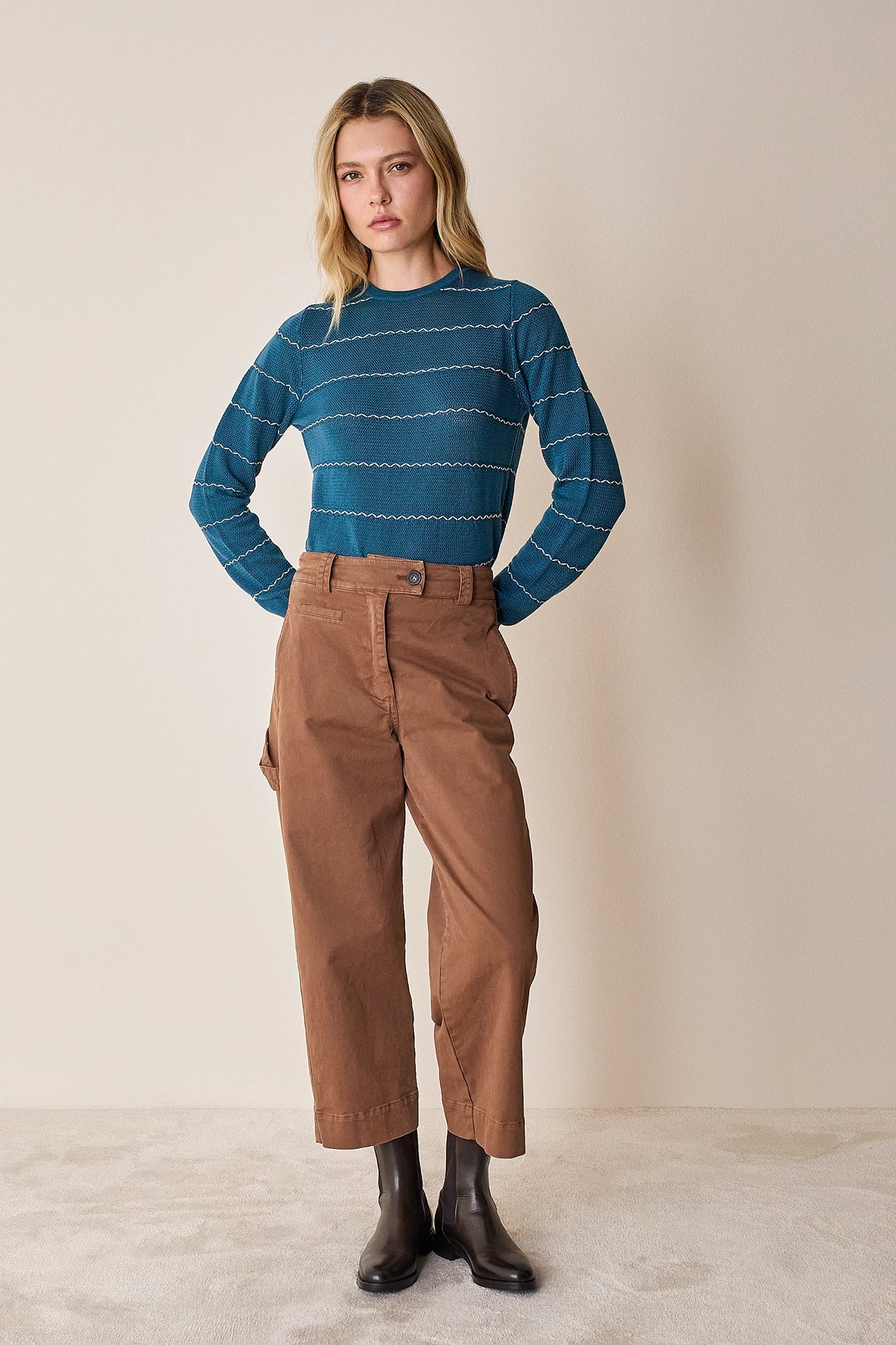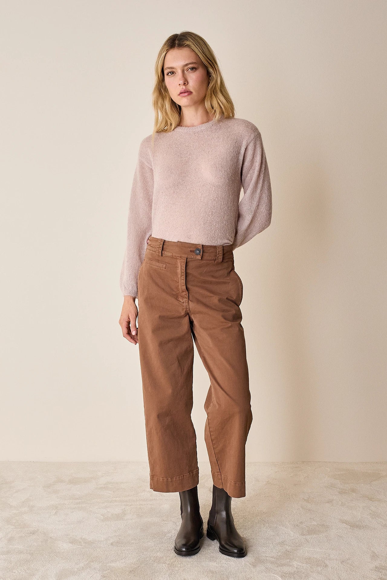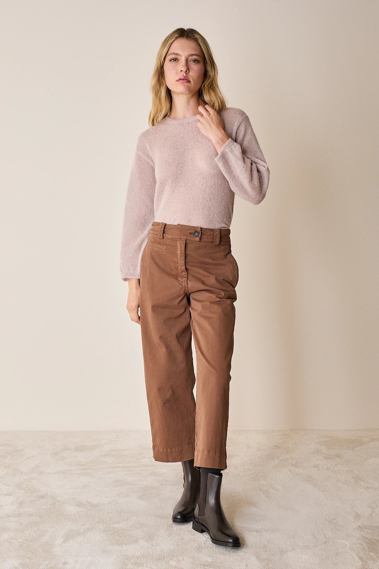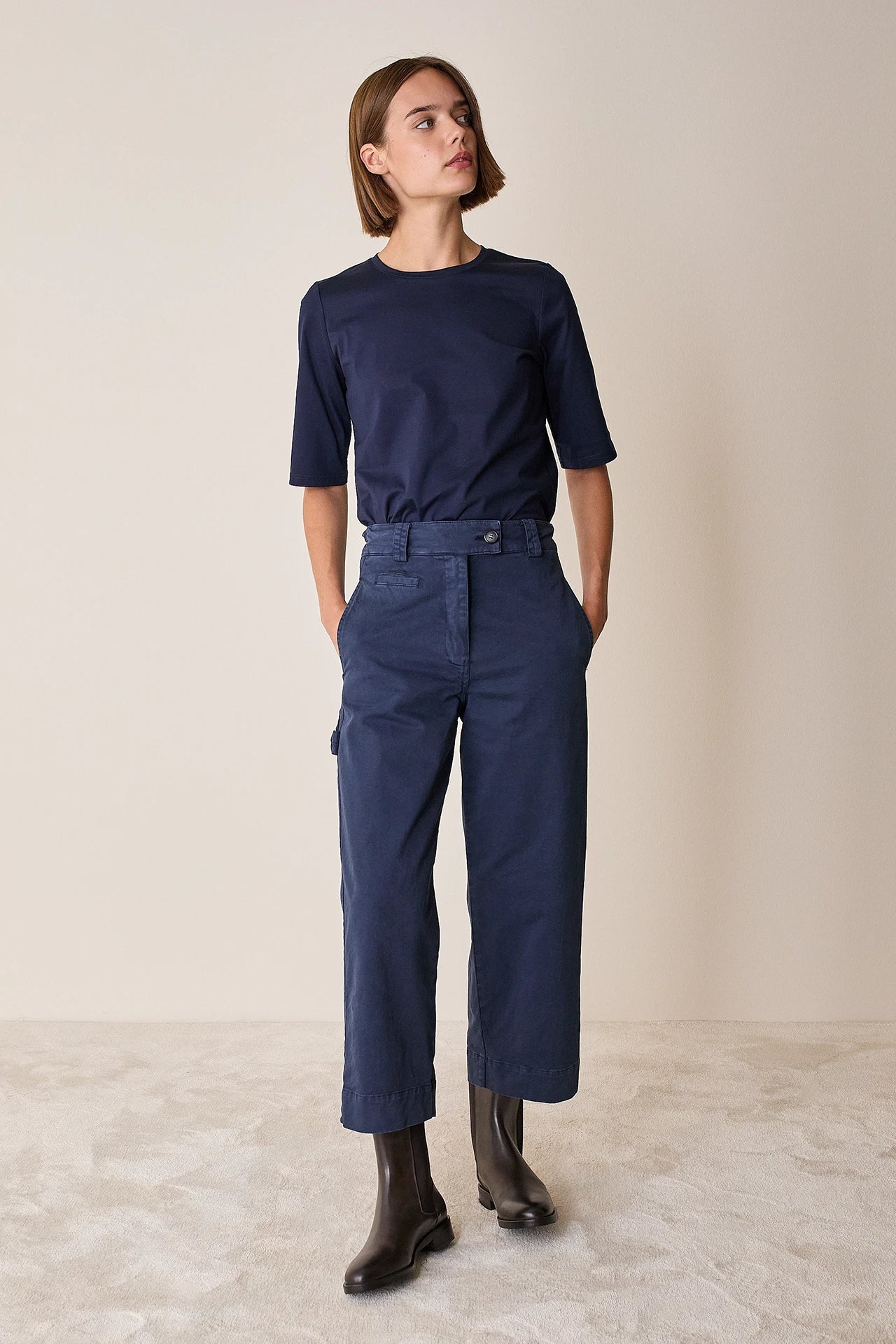 Questi pantaloni cropped in cotone stretch tinto in capo sono pensati per essere indossati con stivali e stivaletti. Comodi e versatili, hanno la vita elastica sul retro e una silhouette dritta che sfiora la caviglia.