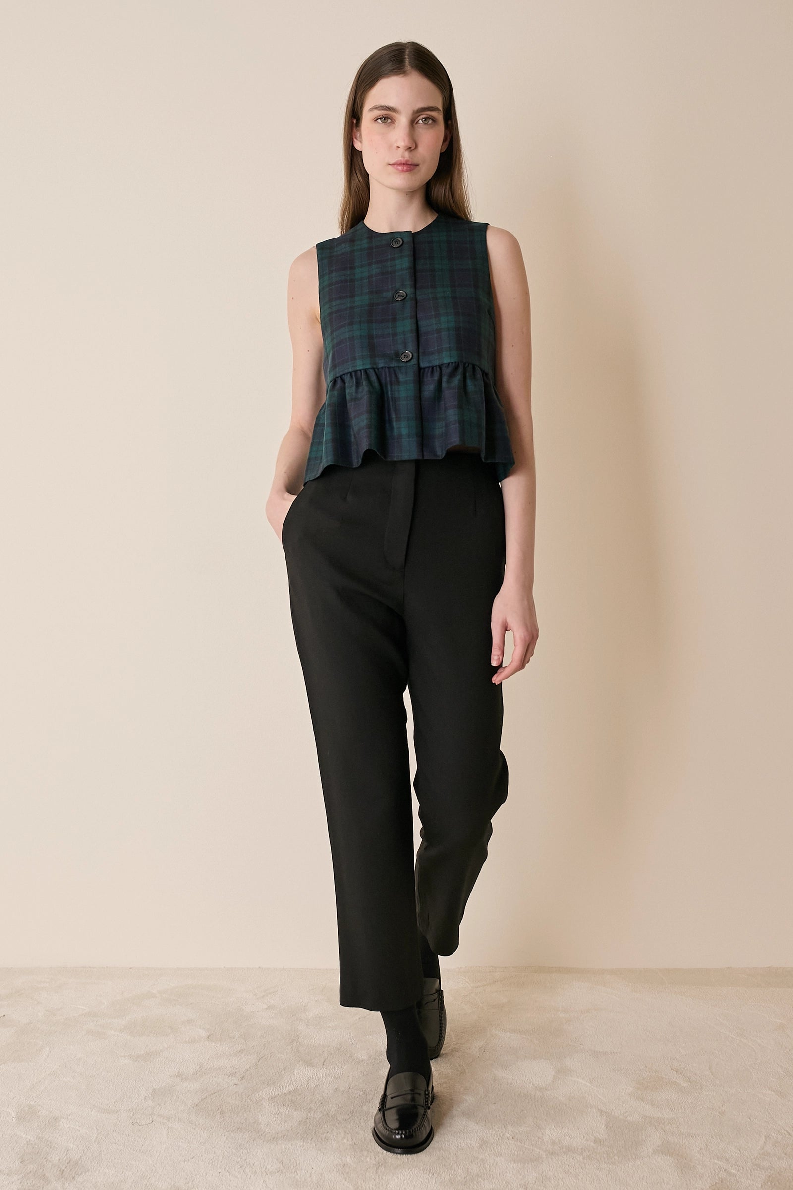 Questi pantaloni in lana comfort sono caratterizzati da un taglio dritto e affusolato che si stringe leggermente verso la caviglia. Perfetti per l’ufficio e le occasioni eleganti, puoi indossarli con un maglioncino oppure con una camicia per un look da tutti i giorni. Disponibili in nero.
