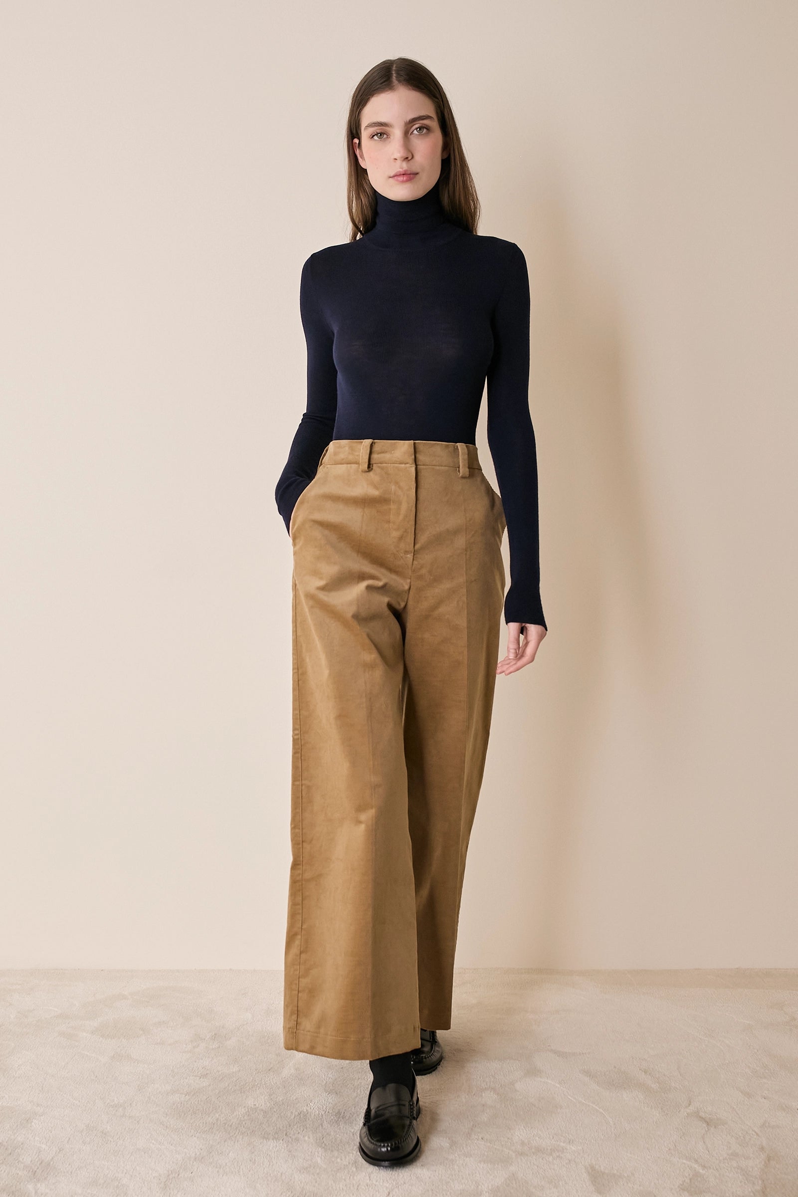 Questi pantaloni in velluto di cotone sono il capo ideale per l’ufficio.