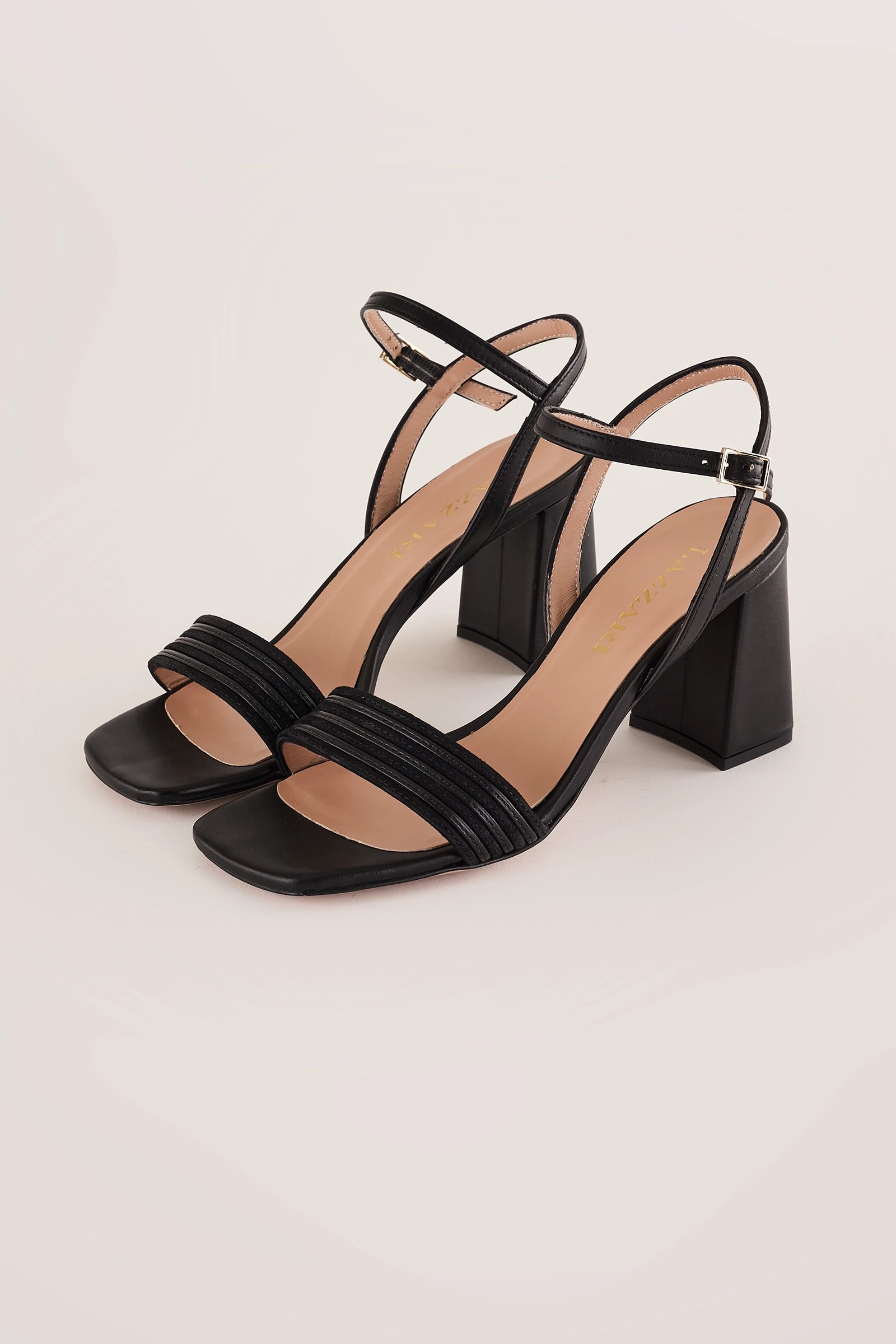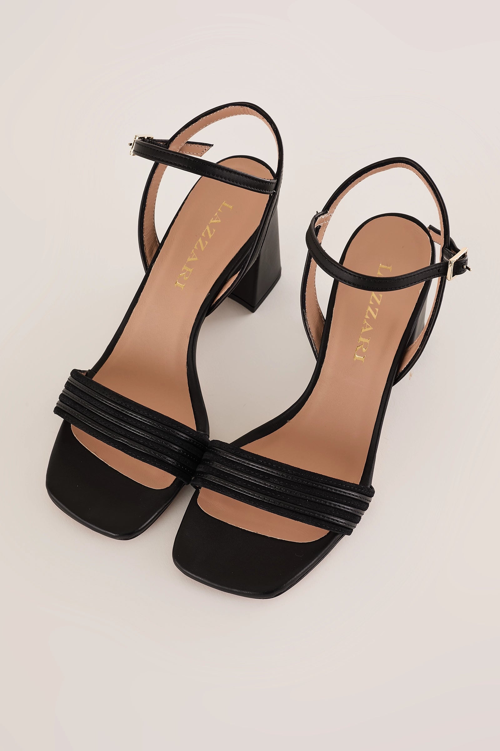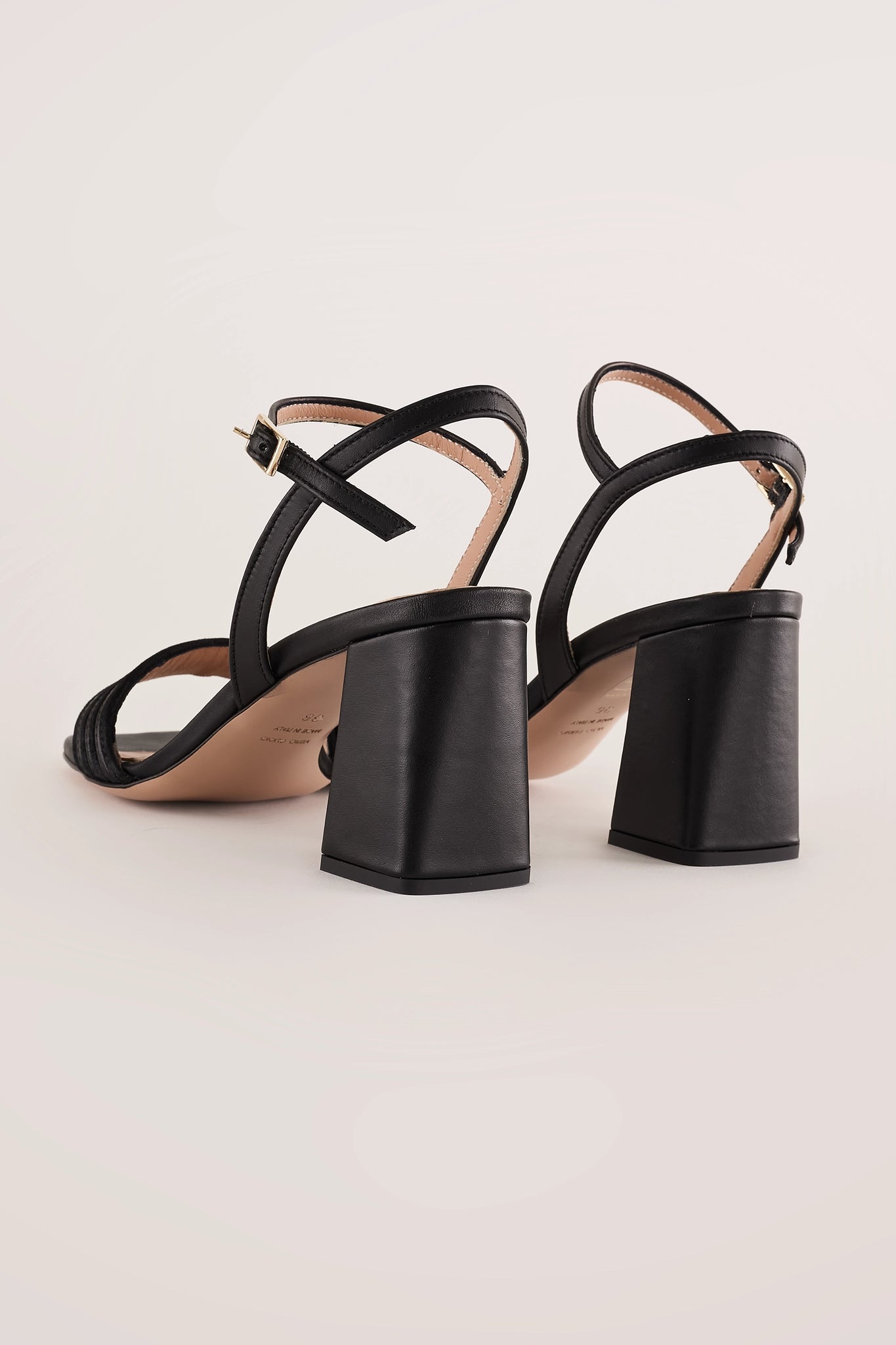 Per questi sandali abbiamo scelto un tacco largo che li rende comodissimi, sia per cerimonie ed eventi sia per tutti i giorni. Caratterizzati da una fascetta bimateriale in nappa e suede tono su tono, sono disponibili in nero.