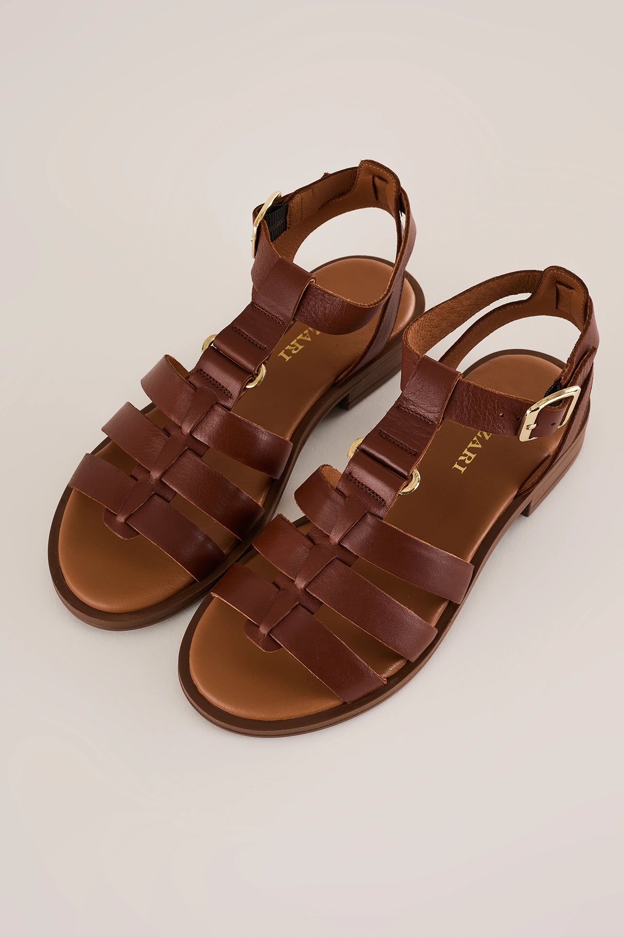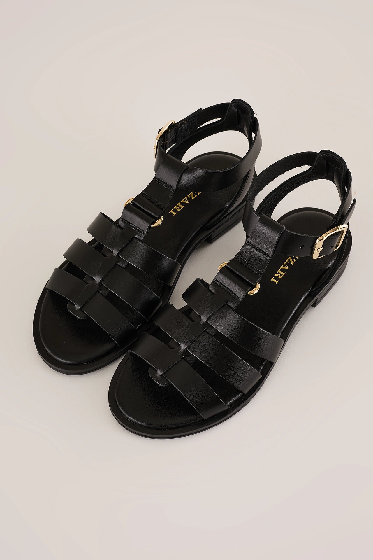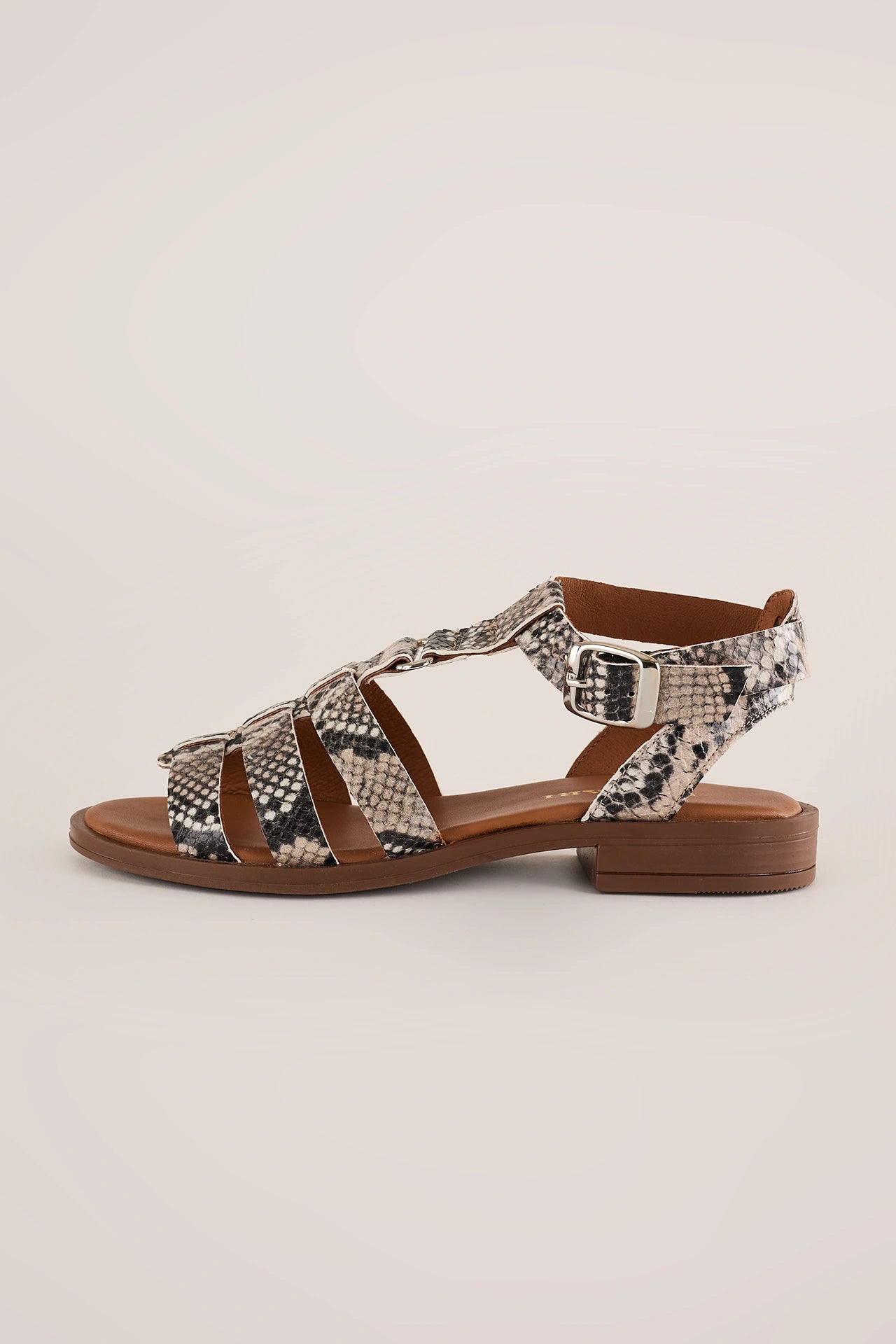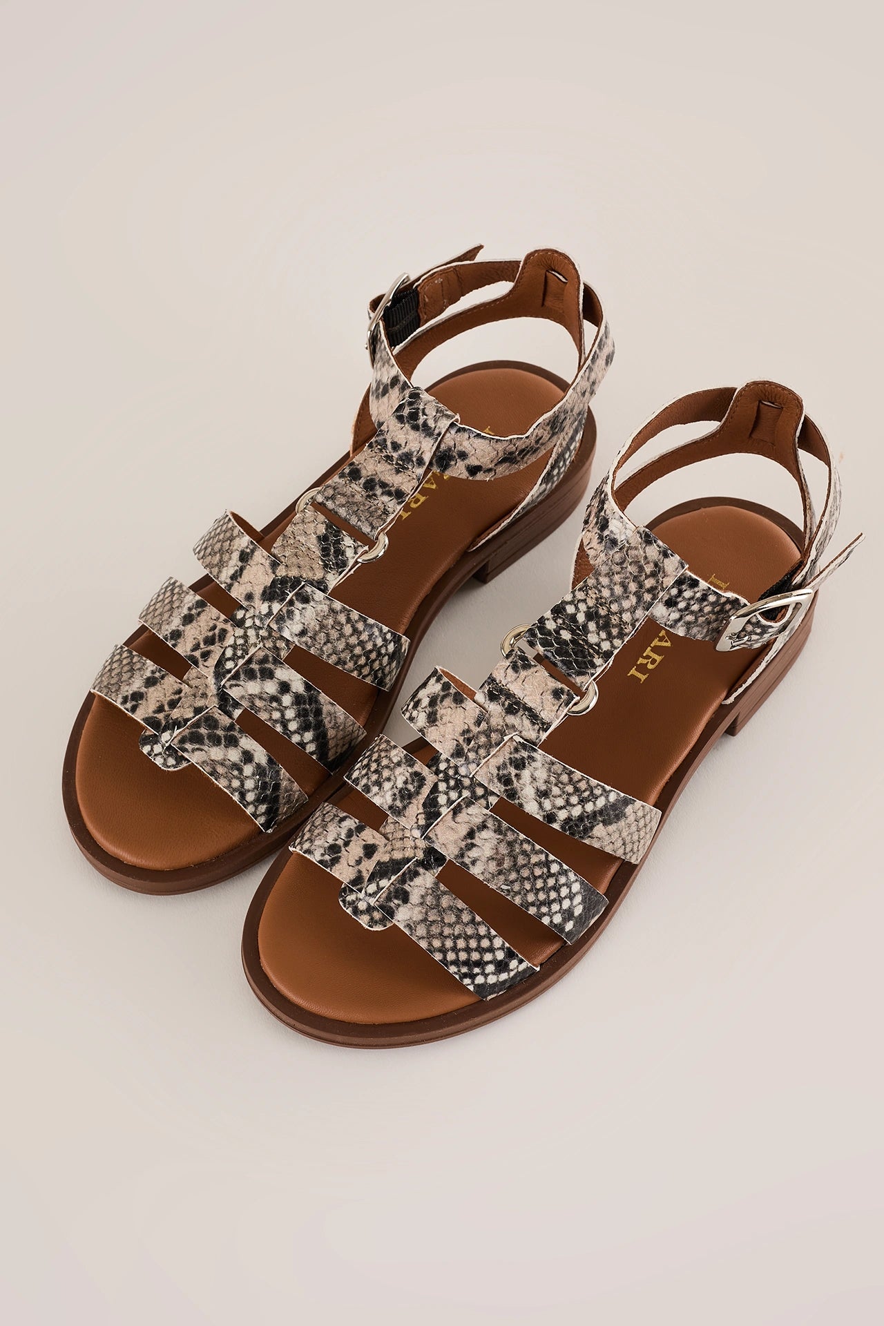 Questi sandali in pelle reinterpretano lo stile gladiatore con un design essenziale a fasce larghe intrecciate. Il cinturino regolabile alla caviglia garantisce una calzata stabile, mentre la soletta imbottita assicura comfort fin dal primo utilizzo. Versatili e facili da abbinare, sono disponibili in nappa nera, nappa cognac e pelle effetto pitone.