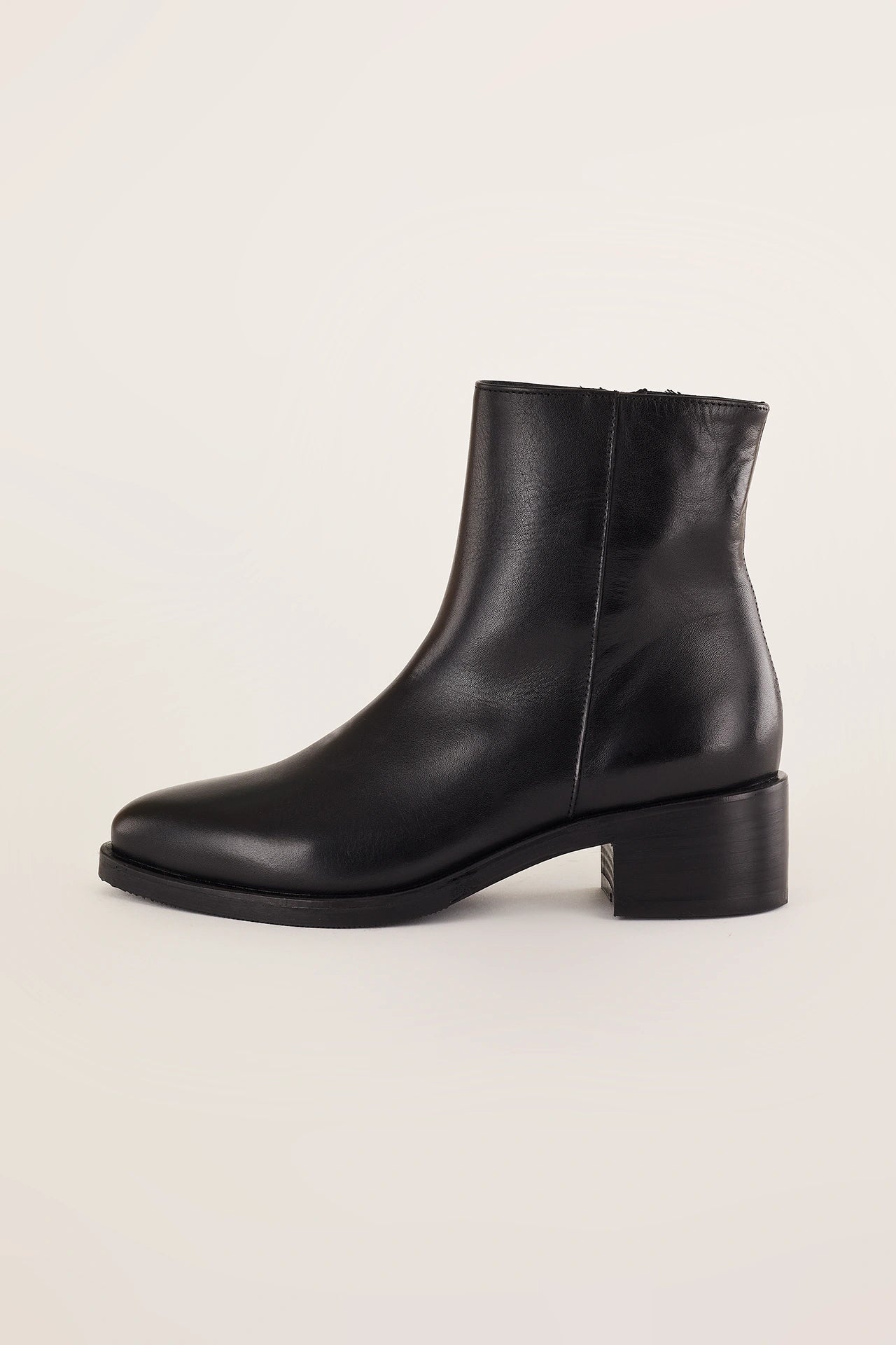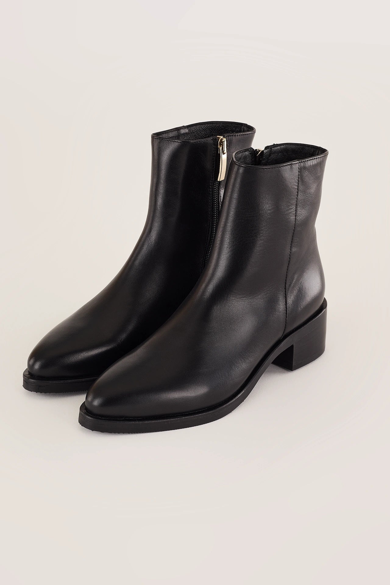 Gli stivaletti alla caviglia sono un modello che non smetterai mai di indossare perché sono perfetti sia per l’ufficio che per il tempo libero. I nostri sono dotati di una pratica zip interna laterale per una calzata facile e veloce e di un tacco basso – disegnato per tutti i giorni. Disponibili in pelle nera.