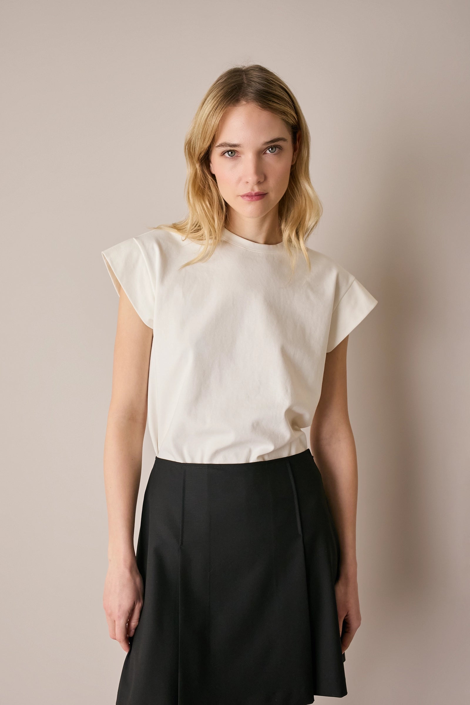 Per questa t-shirt in cotone abbiamo scelto un dettaglio speciale: le maniche a kimono, che trasformano un capo casual in una scelta perfetta anche per l'ufficio.