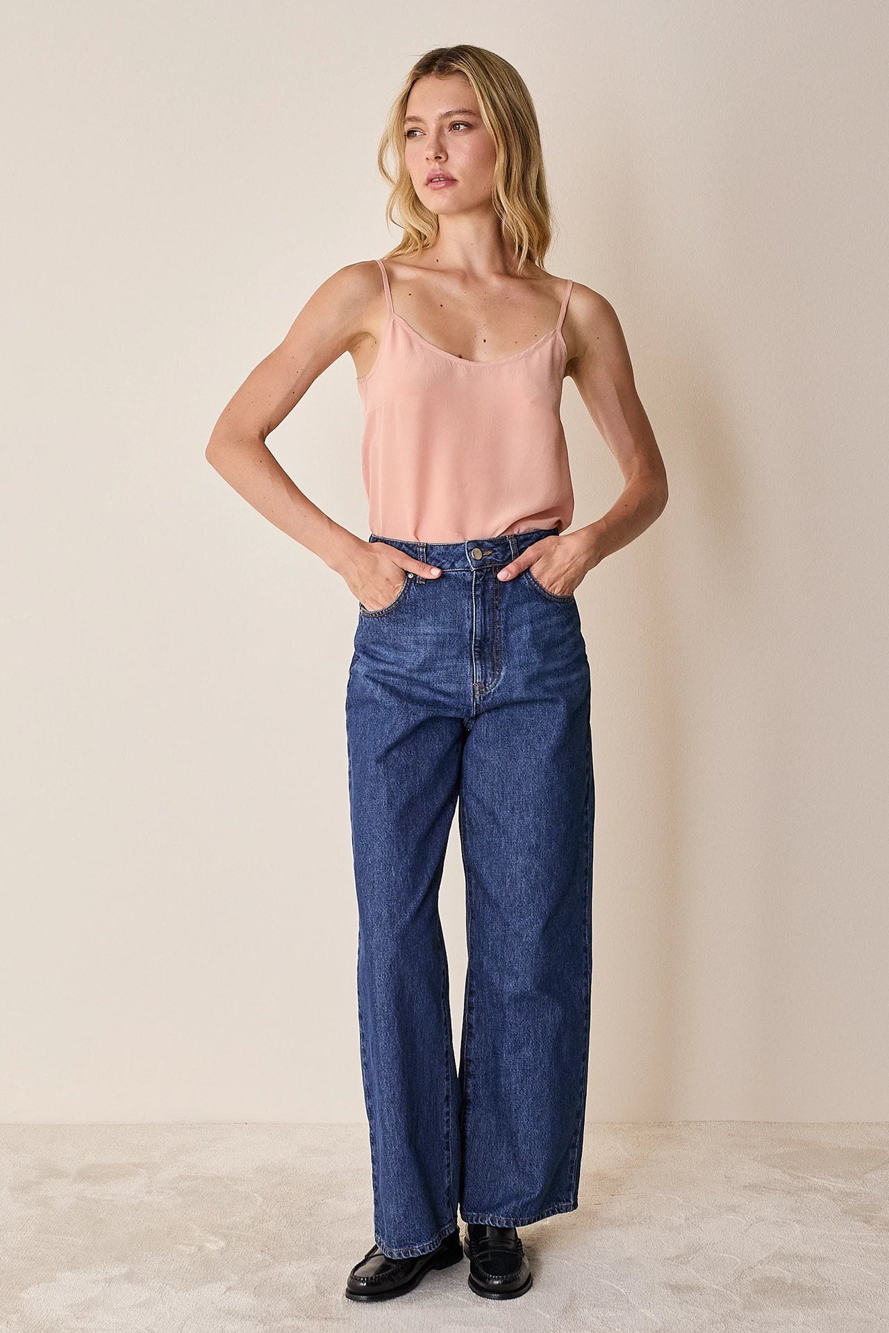 Elevated basics. Questo top elegante in pura seta ti aiuterà ad elevare qualsiasi outfit: in ufficio, usato come sottogiacca, ma anche per un evento o una cerimonia. Il top in seta con spalline sottili è disponibile in blu, rosa o verde.