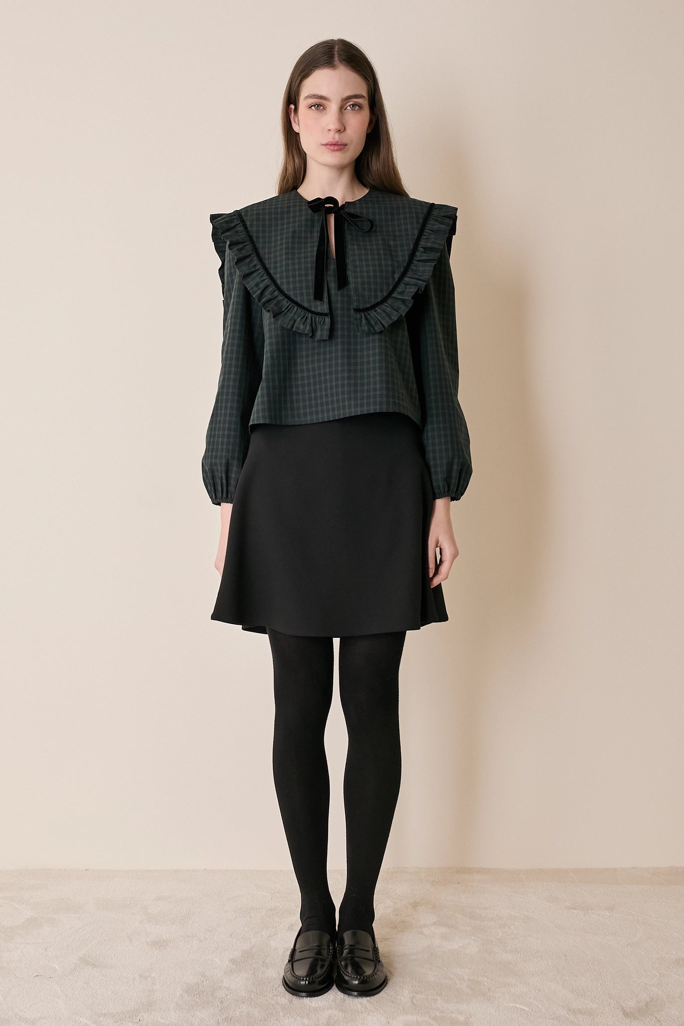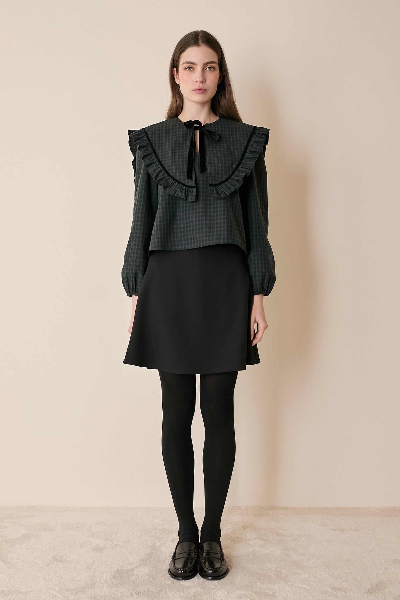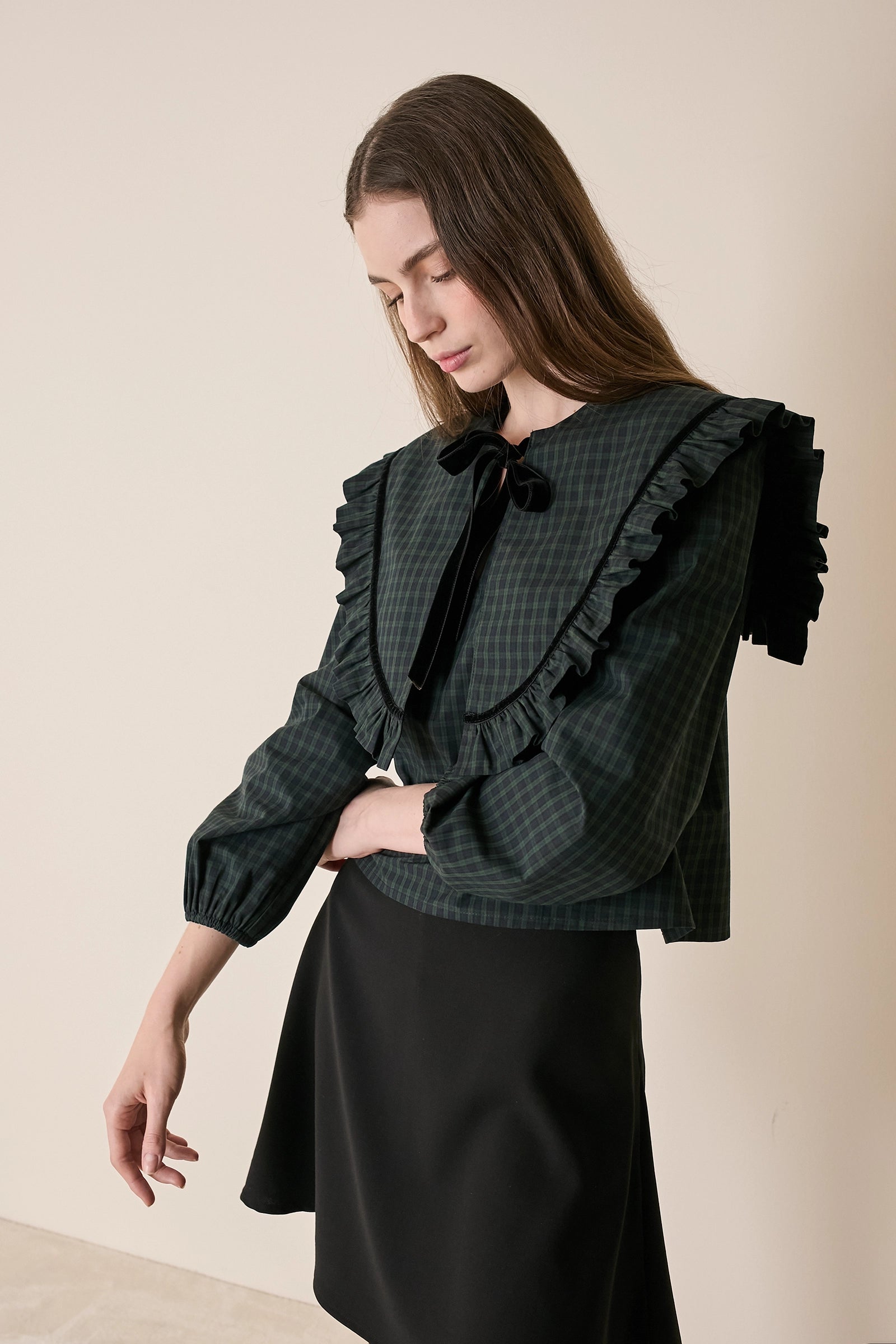 Finalmente possiamo dirlo: it’s tartan o’clock! Noi abbiamo scelto il tessuto scozzese di cotone per un top con maxi colletto, perfetto sia per le feste che per gli ultimi giorni in ufficio.